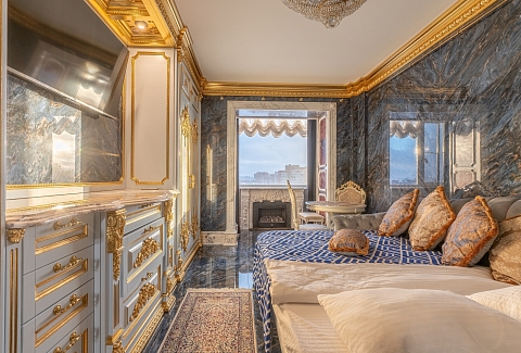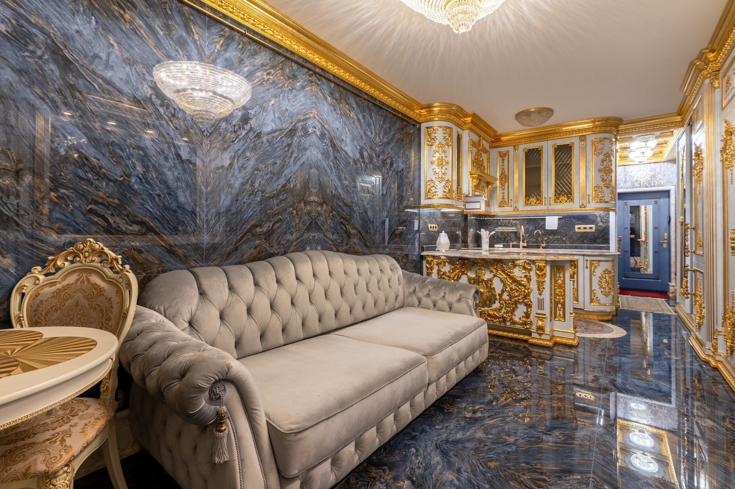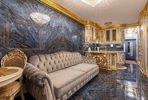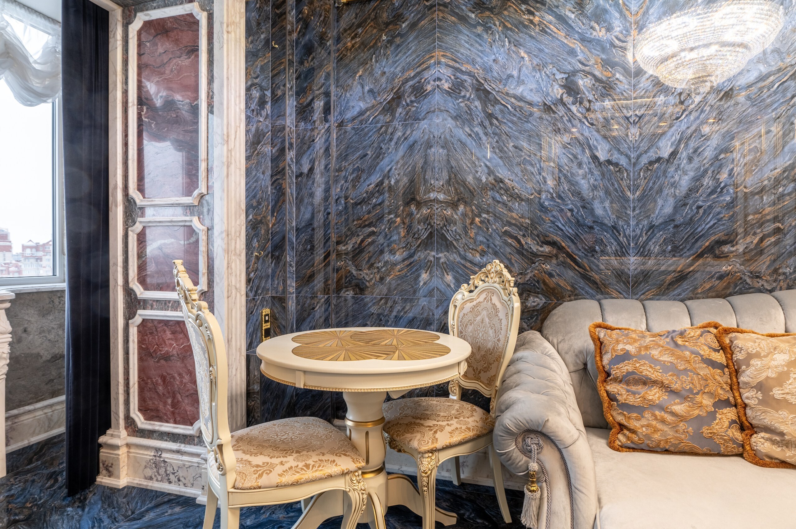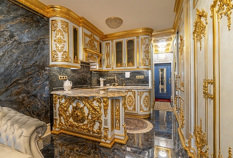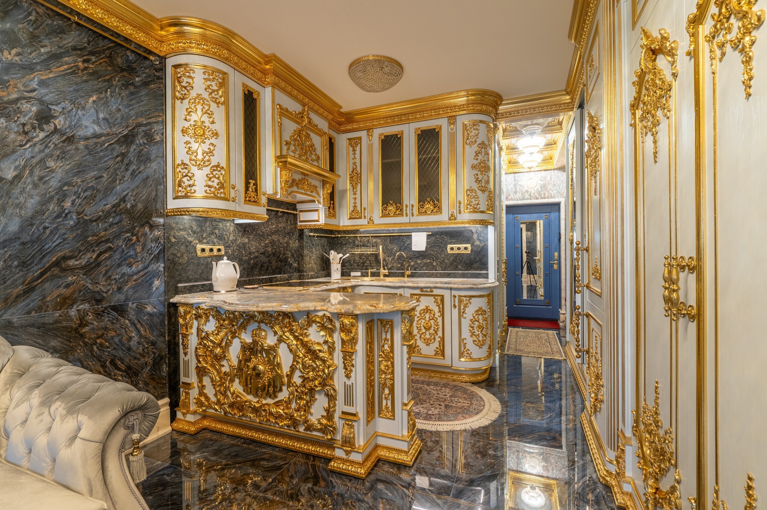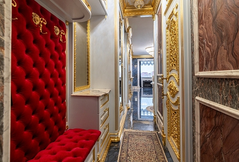 В Санкт-Петербурге, в благоустроенном районе на улице Туристской, дом 10к1, расположены эти уникальные апартаменты с дизайнерским интерьером. Рядом с домом есть всё необходимое для комфортного пребывания: продуктовые магазины, остановки общественного транспорта, социальные объекты и удобная парковка. Район отличается спокойной атмосферой и развитой инфраструктурой, при этом позволяя легко добираться до ключевых точек города.Интерьер выполнен в стиле барокко с использованием натурального мрамора, декоративной лепнины и авторской мебели, создающих ощущение премиального пространства.