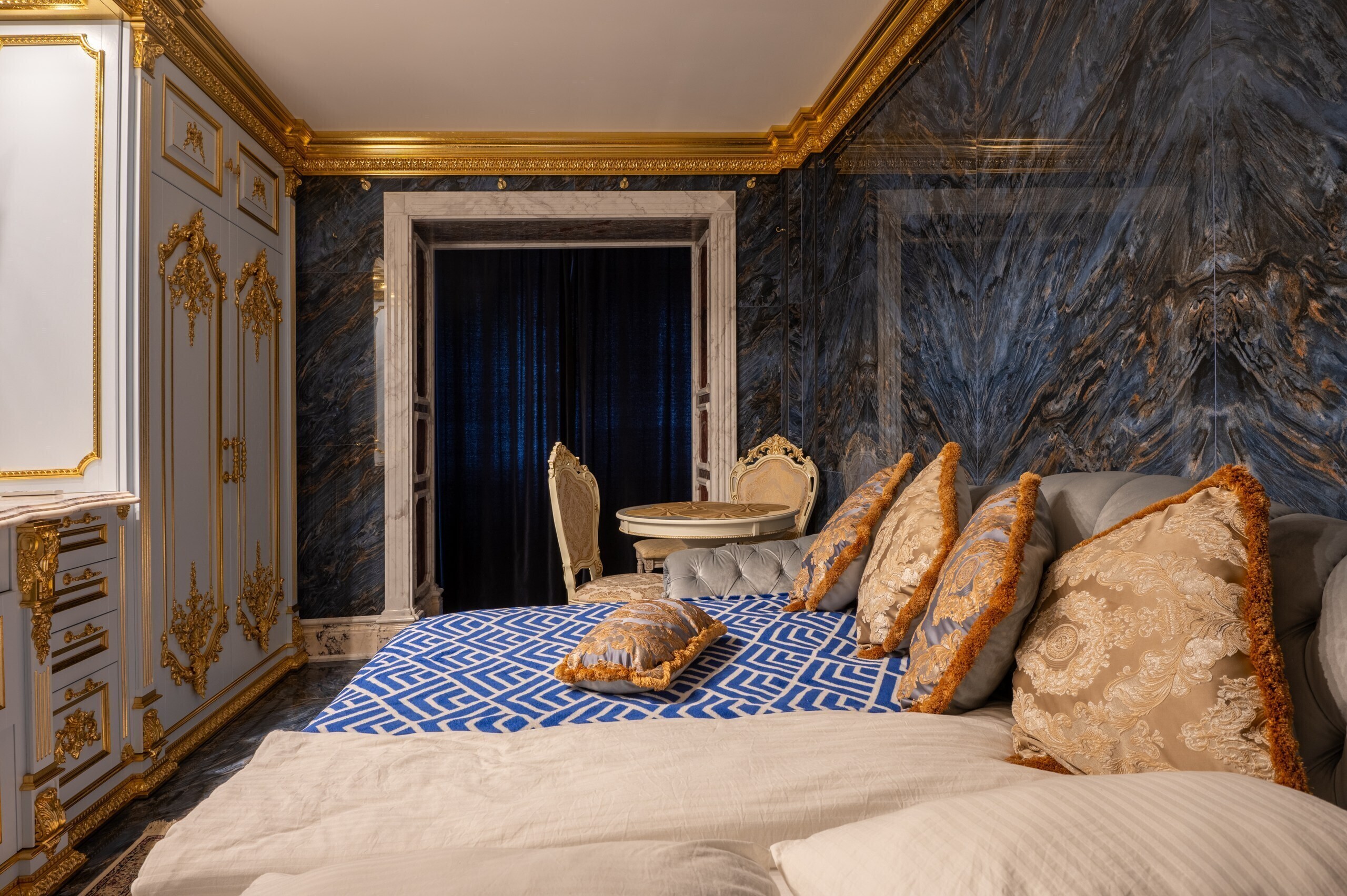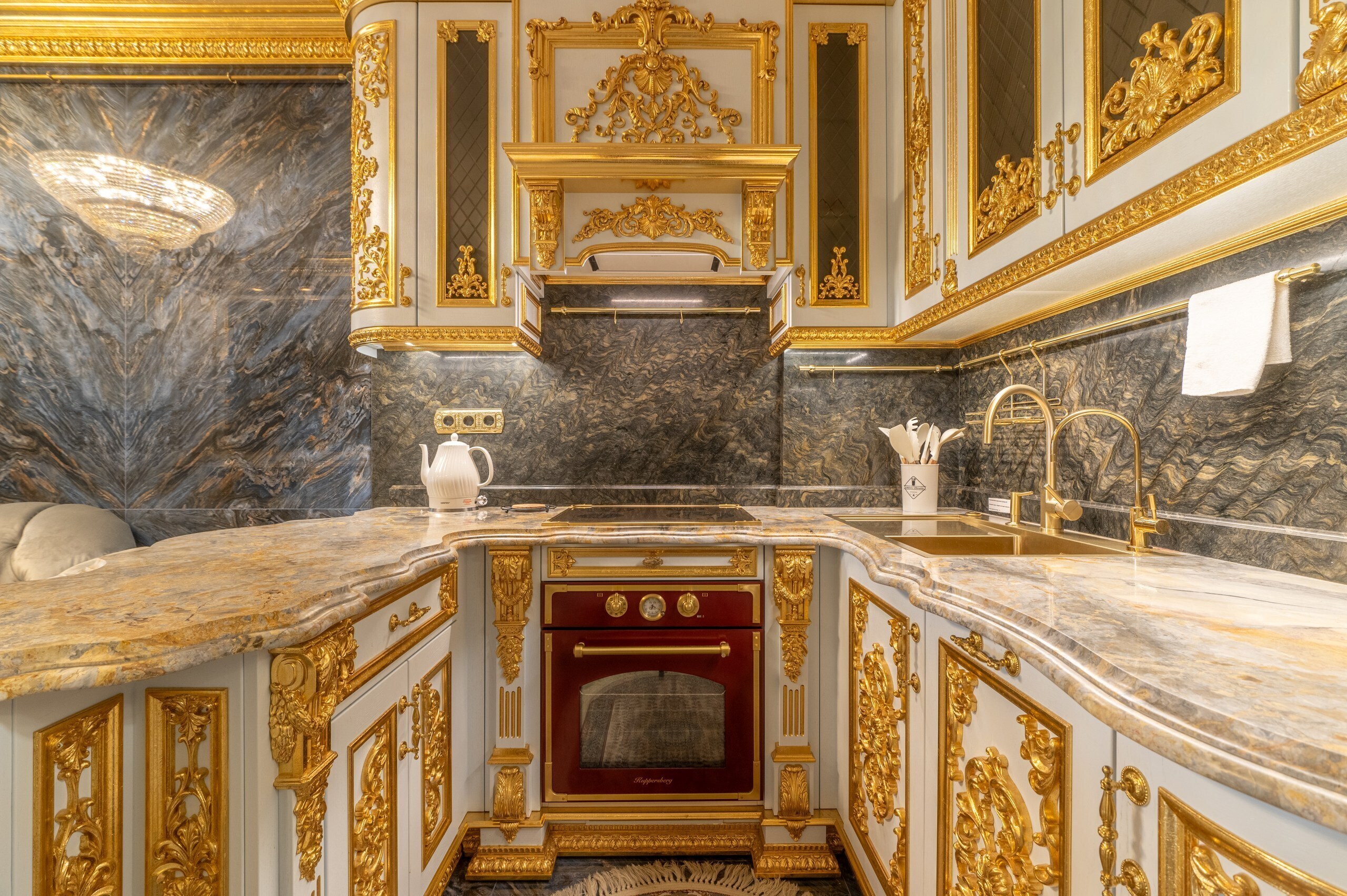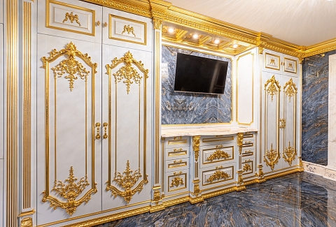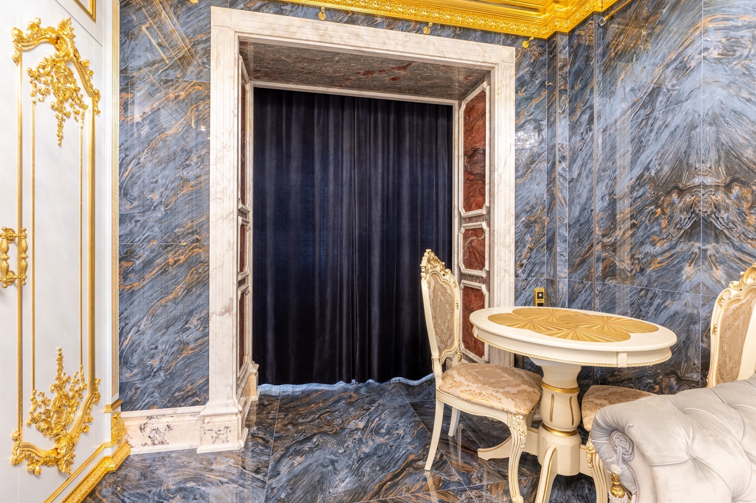В Санкт-Петербурге, в благоустроенном районе на улице Туристской, дом 10к1, расположены эти уникальные апартаменты с дизайнерским интерьером. Рядом с домом есть всё необходимое для комфортного пребывания: продуктовые магазины, остановки общественного транспорта, социальные объекты и удобная парковка. Район отличается спокойной атмосферой и развитой инфраструктурой, при этом позволяя легко добираться до ключевых точек города.Интерьер выполнен в стиле барокко с использованием натурального мрамора, декоративной лепнины и авторской мебели, создающих ощущение премиального пространства.
