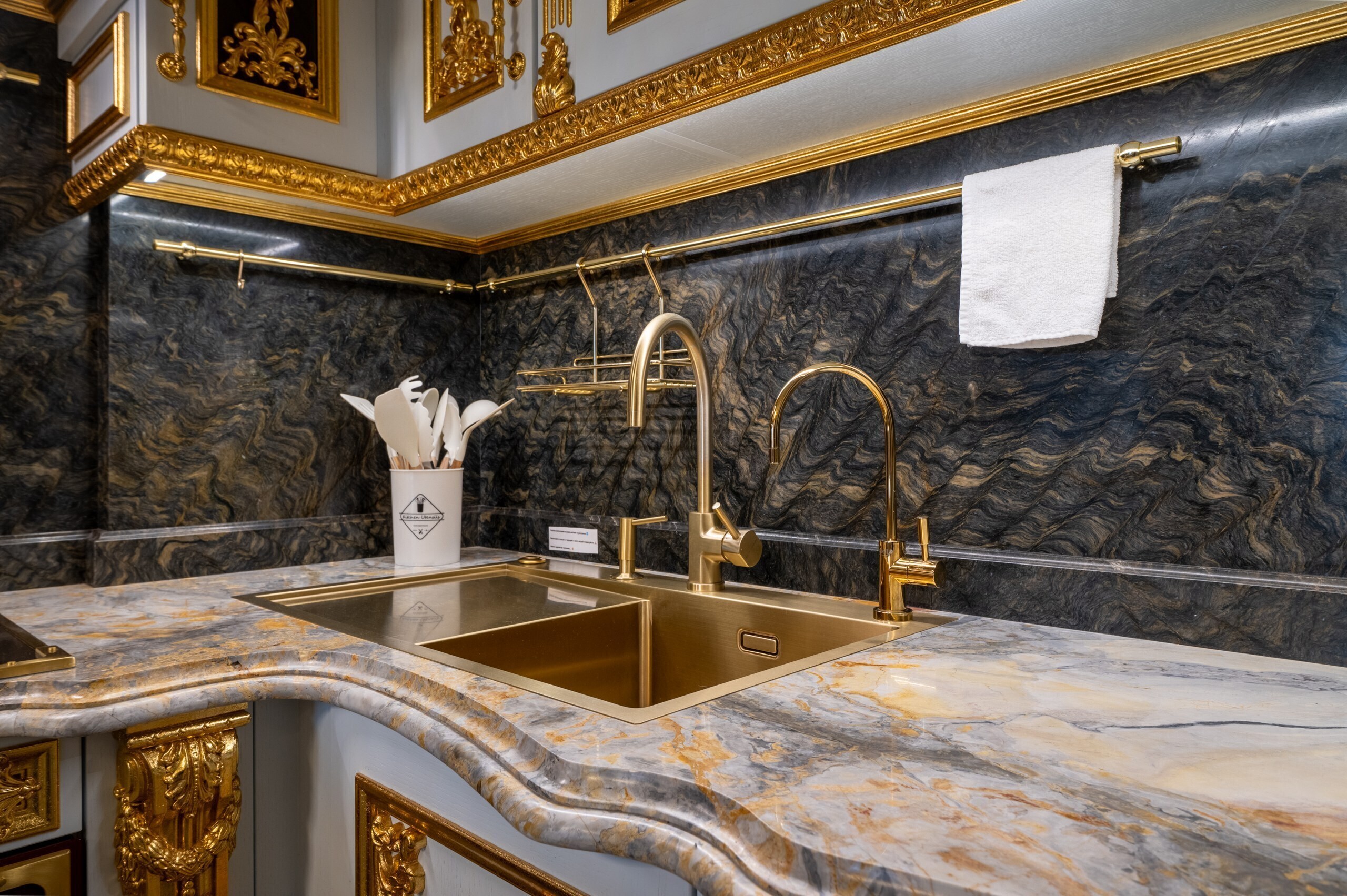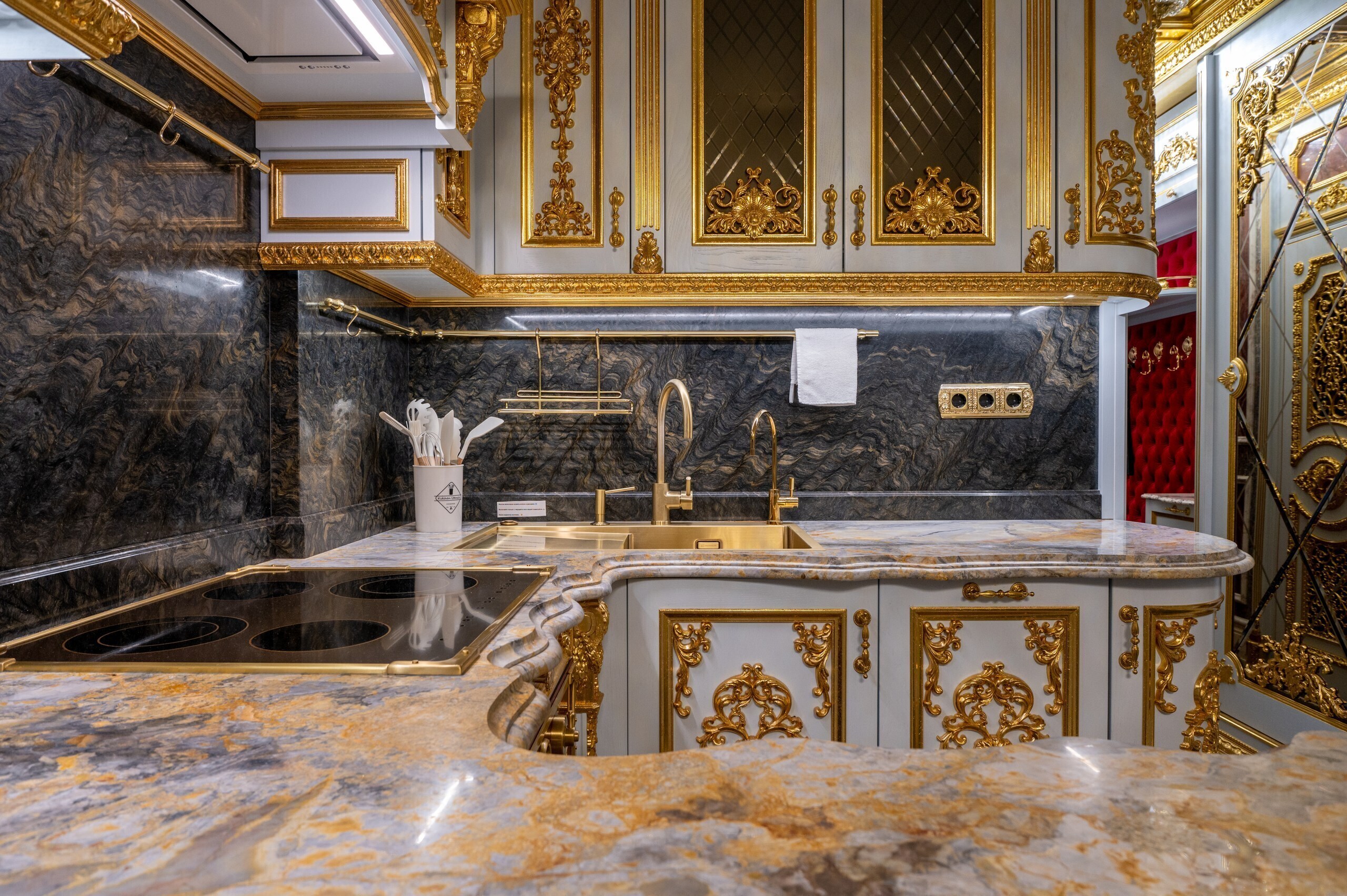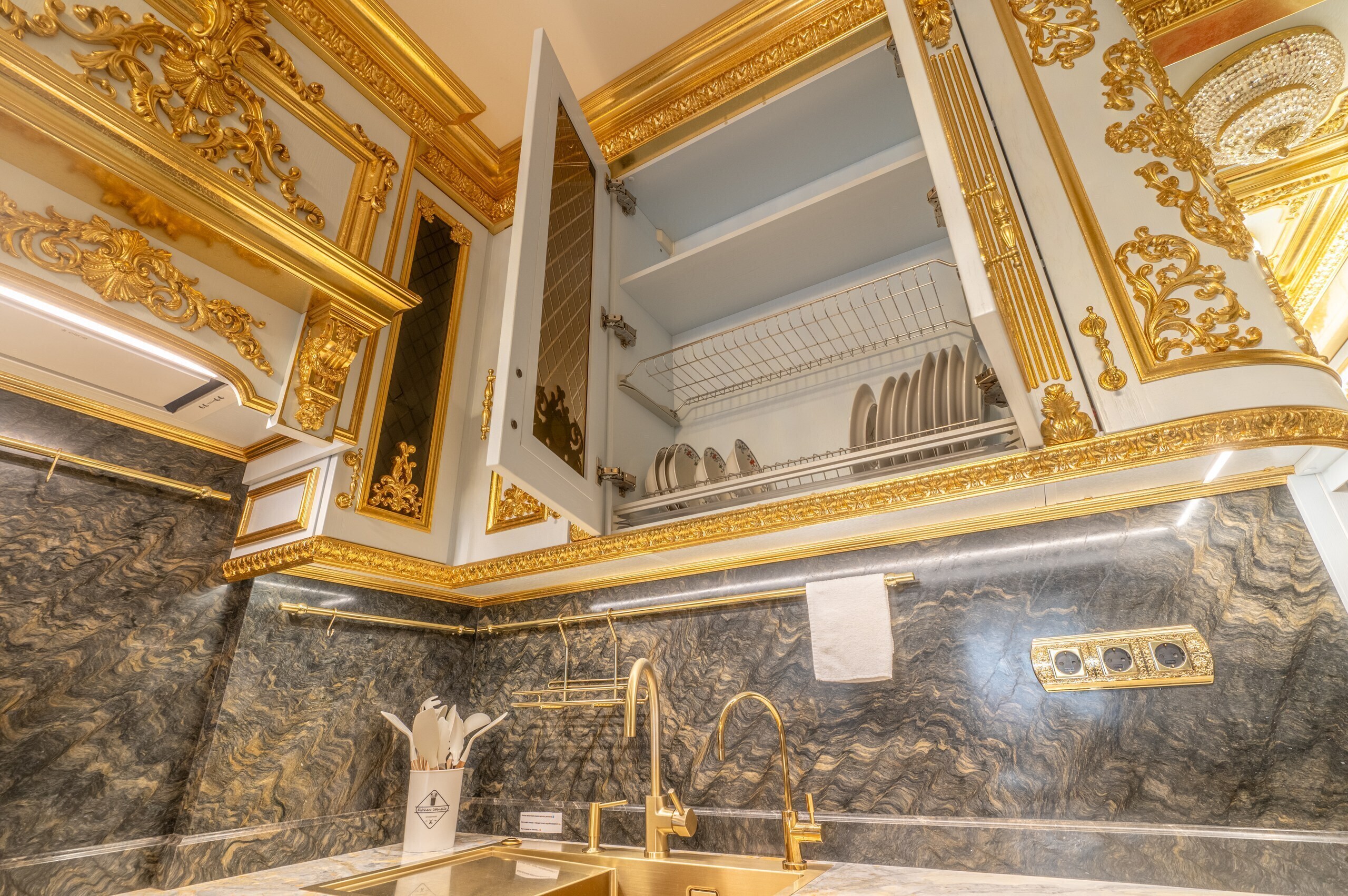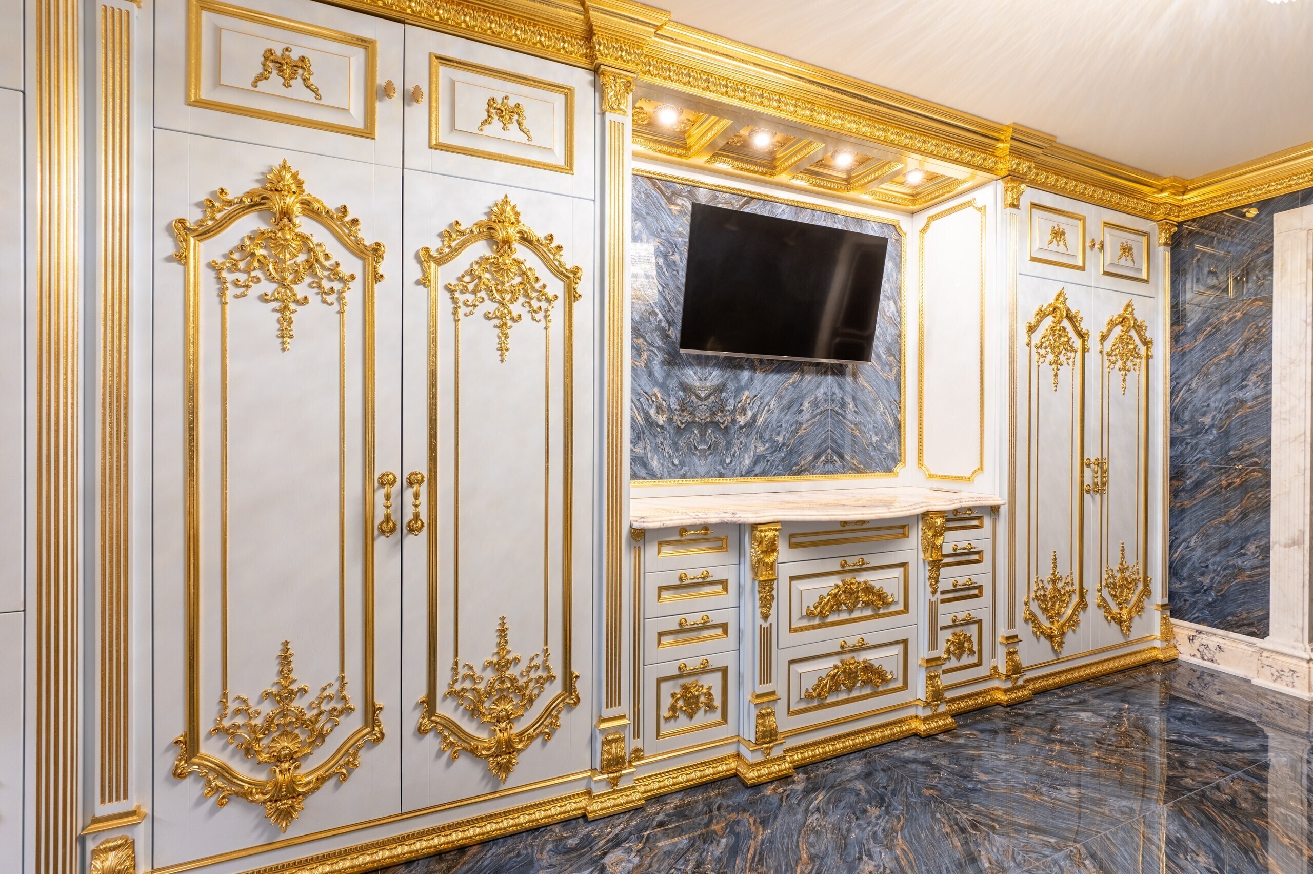 В Санкт-Петербурге, в благоустроенном районе на улице Туристской, дом 10к1, расположены эти уникальные апартаменты с дизайнерским интерьером. Рядом с домом есть всё необходимое для комфортного пребывания: продуктовые магазины, остановки общественного транспорта, социальные объекты и удобная парковка. Район отличается спокойной атмосферой и развитой инфраструктурой, при этом позволяя легко добираться до ключевых точек города.Интерьер выполнен в стиле барокко с использованием натурального мрамора, декоративной лепнины и авторской мебели, создающих ощущение премиального пространства.
