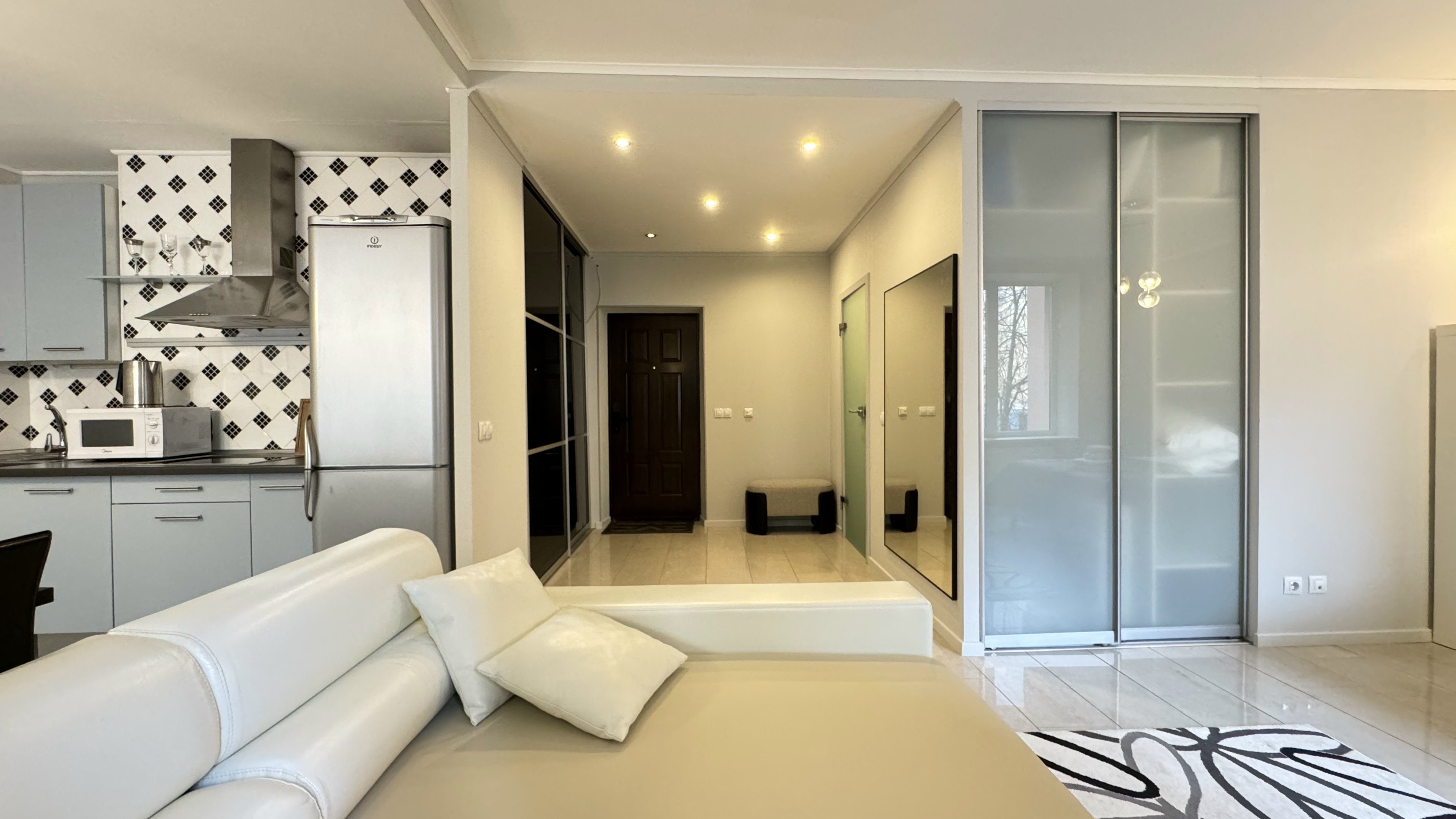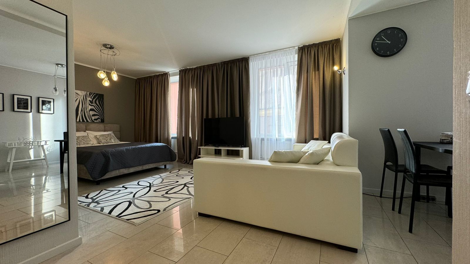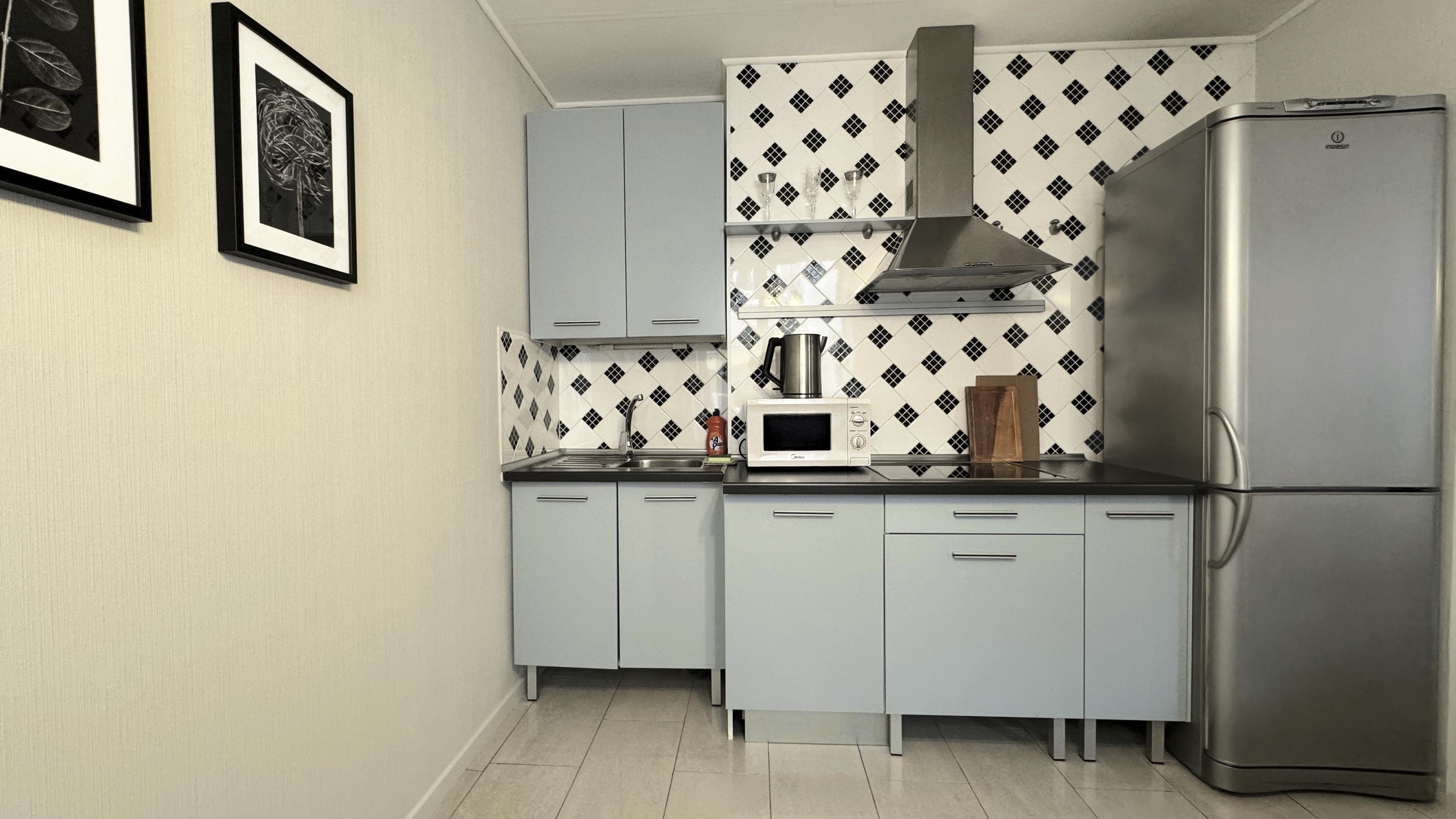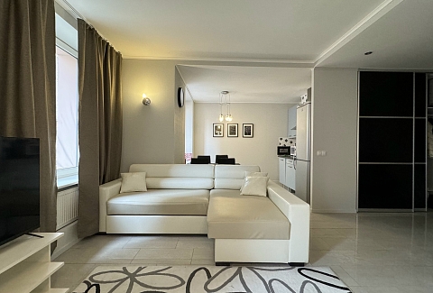 В окружении есть все необходимое для повседневных нужд: магазины, остановки общественного транспорта и благоустроенные городские пространства.Внутреннее пространство апартаментов организовано с вниманием к деталям и потребностям гостей. Предусмотрены комфортные места для отдыха: двуспальная кровать и раскладывающийся диван, также предназначенный для двоих. На кухне установлена электрическая плита, холодильник, микроволновая печь и посудомоечная машина, имеется полный набор посуды и кухонных принадлежностей. В собственной ванной комнате с душевой кабиной гостей ждут фен и средства гигиены. Для создания атмосферы домашнего уюта предусмотрены текстиль — постельное белье и полотенца, а также приятные дополнения: чай, кофе, утюг и стиральная машина. Свободный доступ к Wi-Fi и наличие телевизора позволяют оставаться на связи или наслаждаться отдыхом после насыщенного дня. Просторные шкафы и функциональная мебель дают возможность удобно разместить личные вещи.Эти апартаменты станут продуманным выбором для тех, кто ценит комфорт и расположение в самом сердце города, оставаясь при этом в тихой и уютной обстановке, где есть все необходимое для продолжительного пребывания.