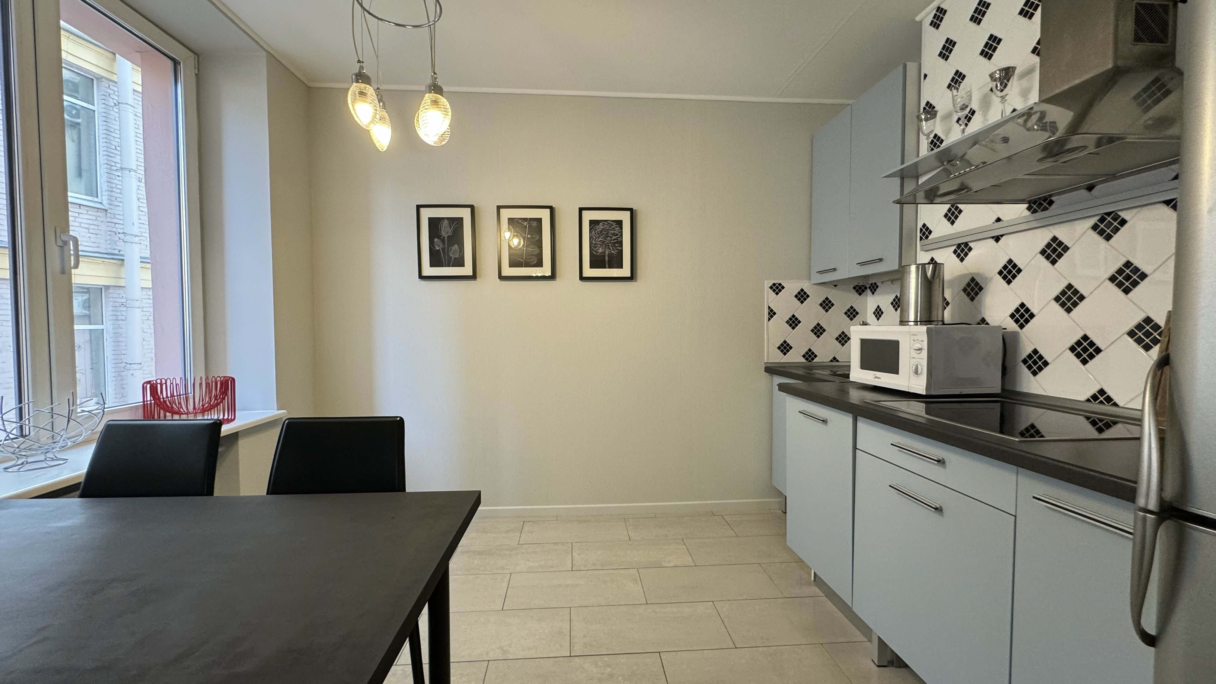В центре Санкт-Петербурга, в районе, позволяющем полностью погрузиться в атмосферу города, расположены эти просторные апартаменты. Главные достопримечательности находятся в пешей доступности, а транспортная инфраструктура радует своей продуманностью: всего в четырех минутах ходьбы — станция метро «Площадь Восстания», пять минут занимает путь до «Маяковской». Рядом с Московским вокзалом, торговым центром «Галерея» и Невским проспектом, что делает пребывание максимально удобным.