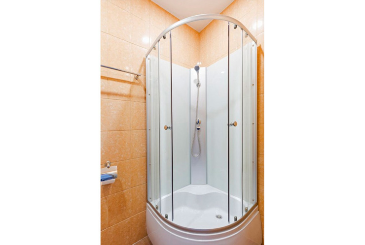 Санузел: с душем, тапочки, туалетные принадлежности, фен