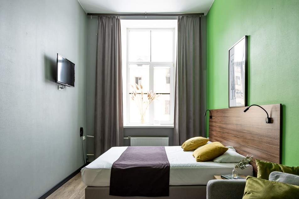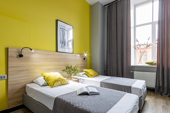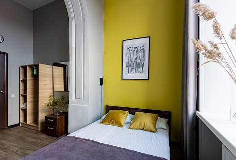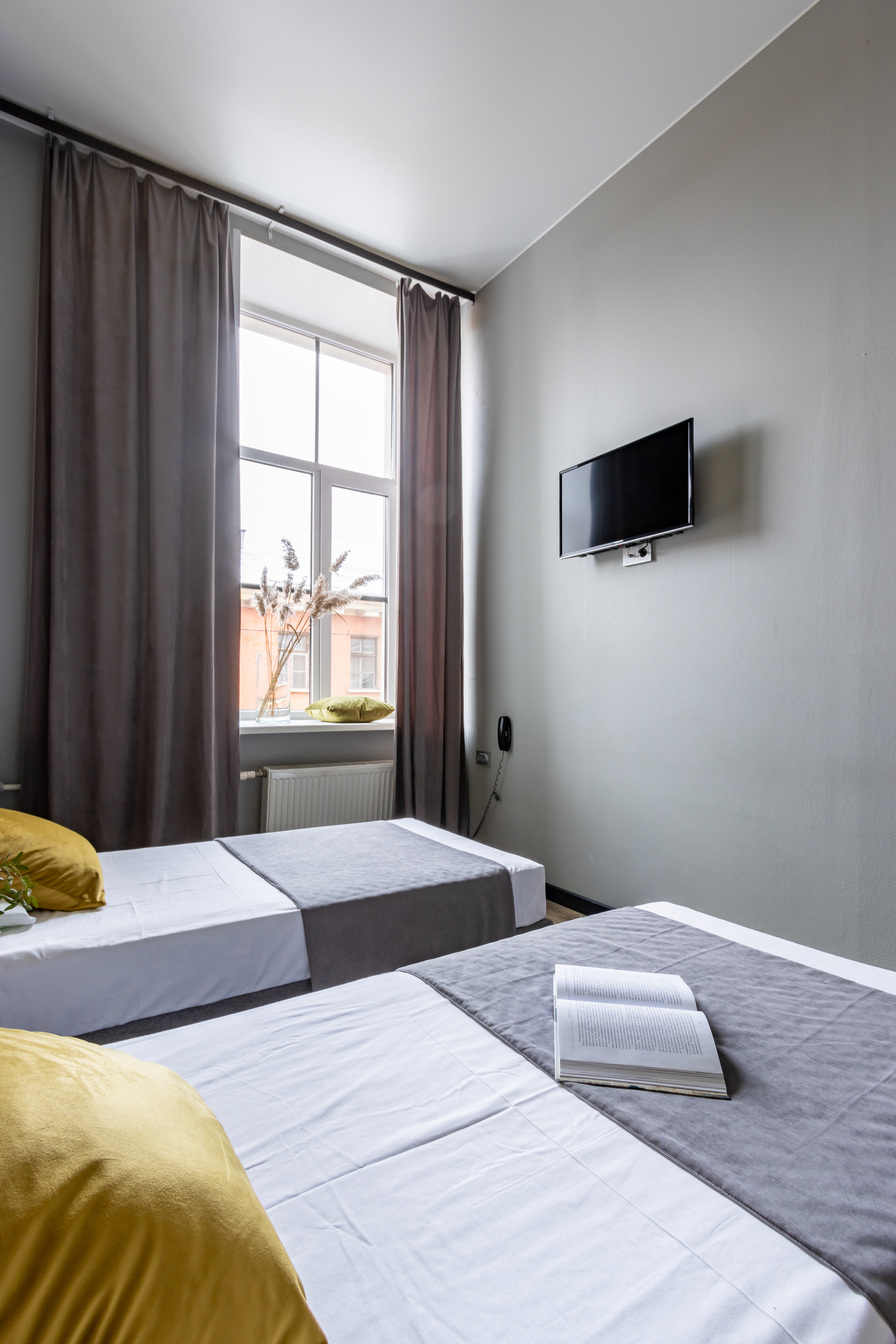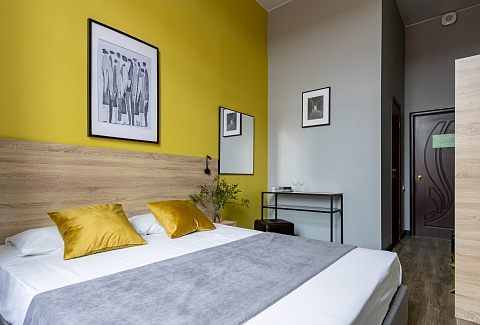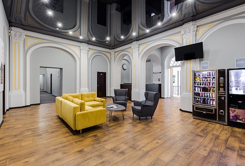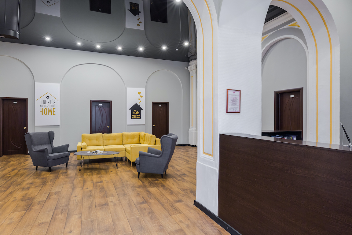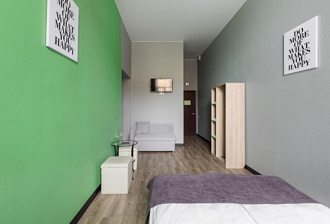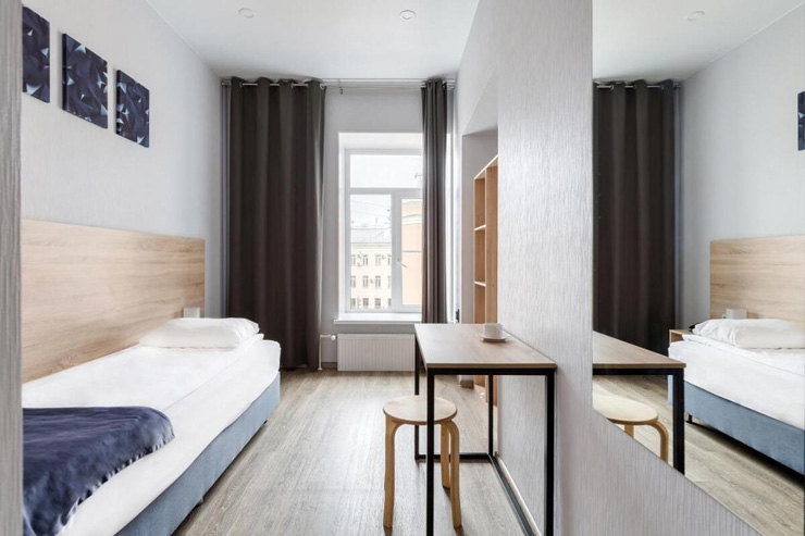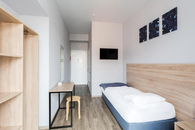 Гостей ожидают 2-х и 3-х местные номера, в каждом из которых есть индивидуальный санузел с душем, телевизор и фен.Питание в отеле не предусмотрено, однако, организована общая кухня с кулером, микроволновкой и холодильником, в холле установлен вендинговый автомат. Также гостям доступен беспроводной интернет, а на стойке регистрации можно приобрести экскурсии по городу и билеты на поезд или самолет.