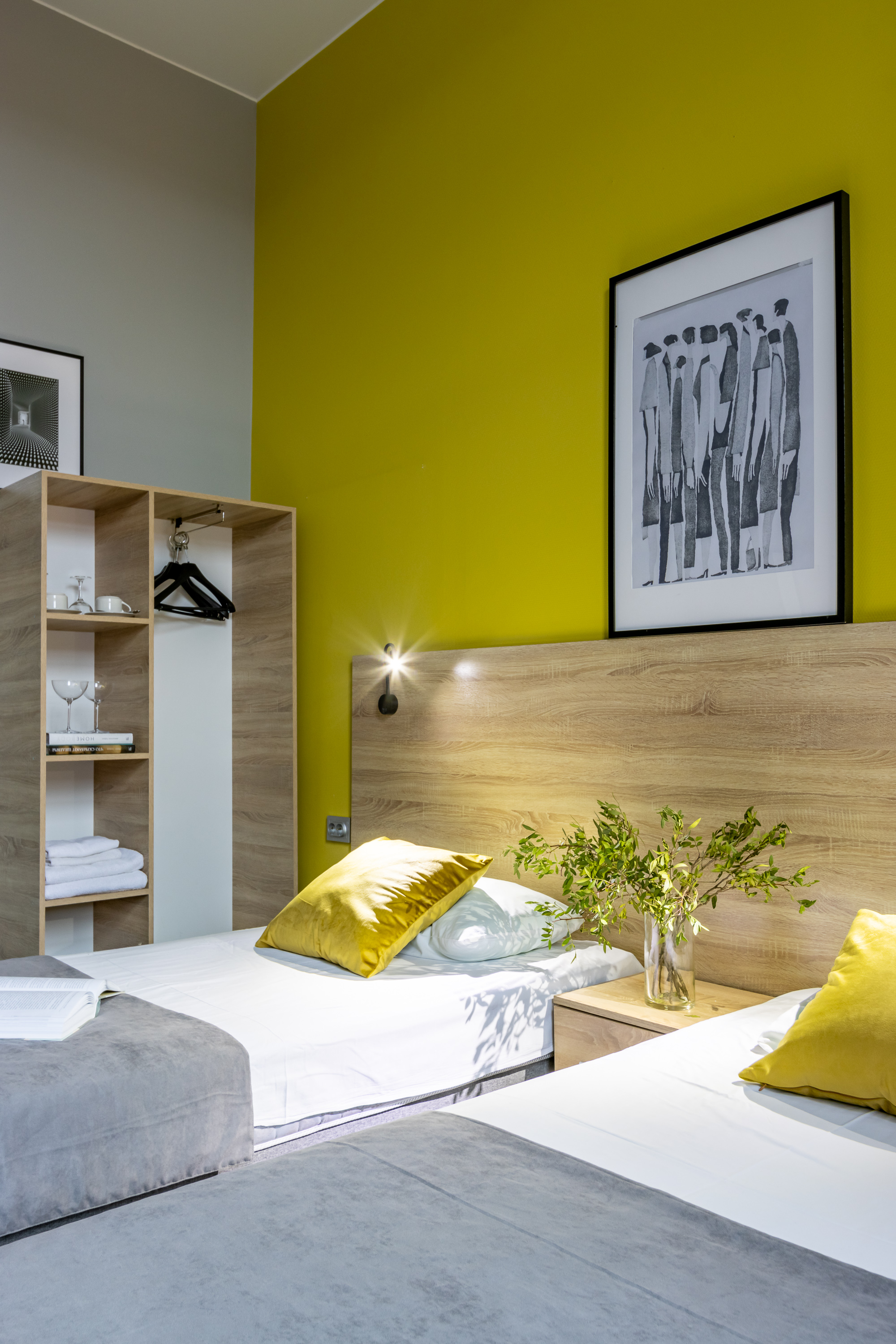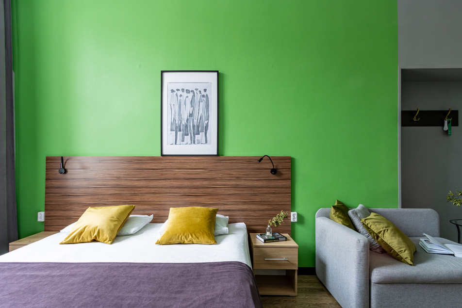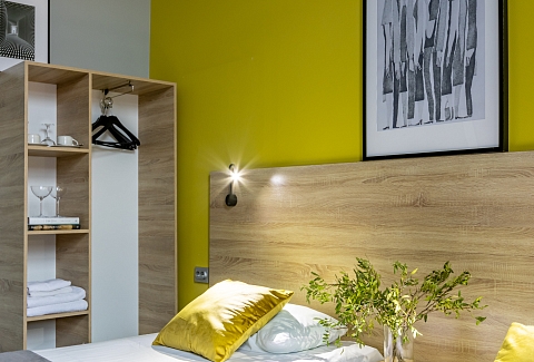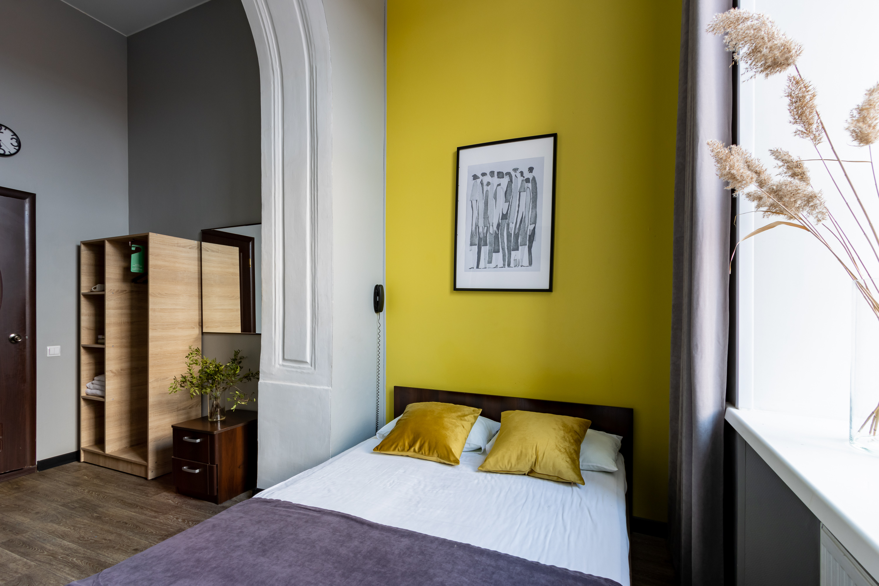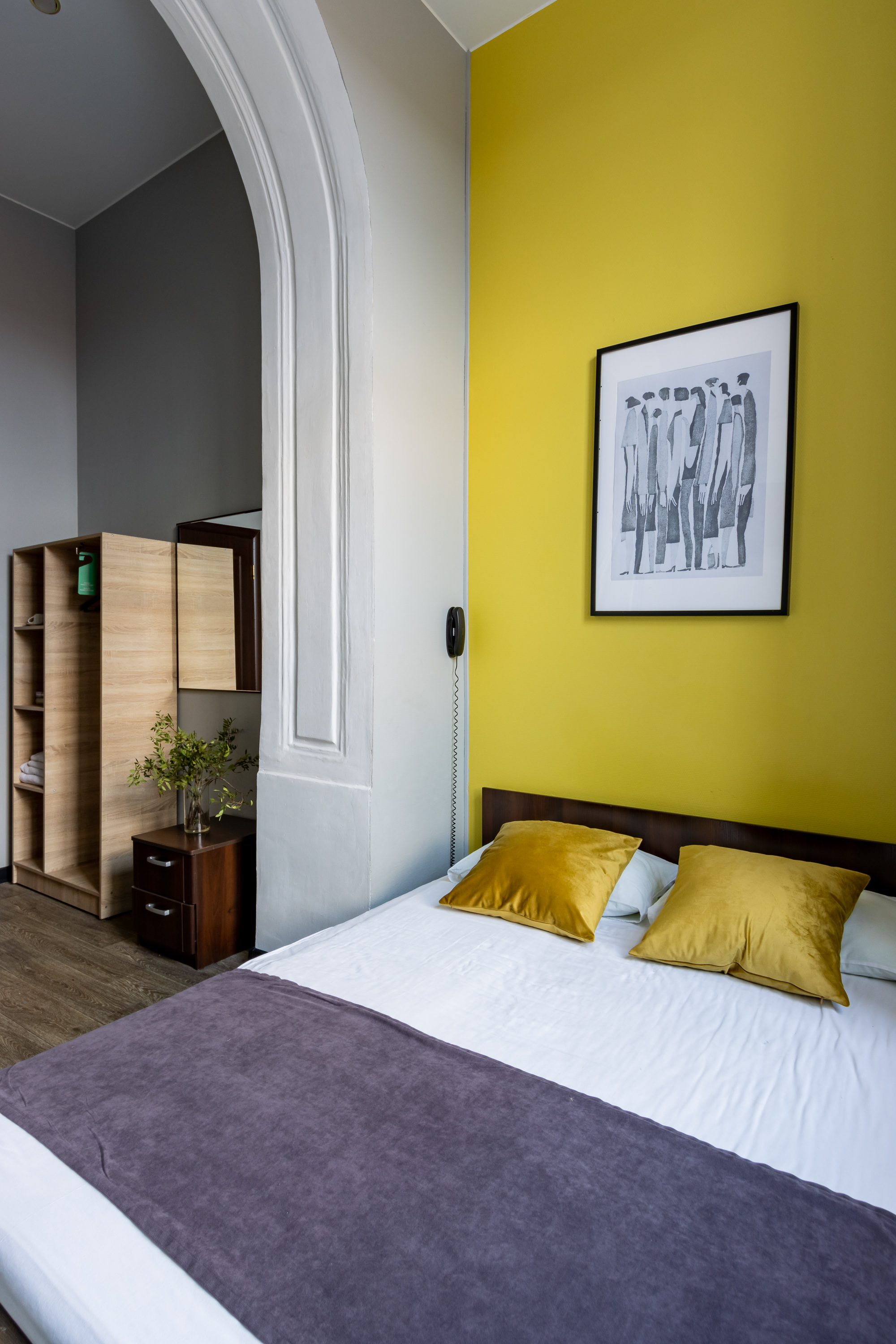 Гостей ожидают 2-х и 3-х местные номера, в каждом из которых есть индивидуальный санузел с душем, телевизор и фен.Питание в отеле не предусмотрено, однако, организована общая кухня с кулером, микроволновкой и холодильником, в холле установлен вендинговый автомат. Также гостям доступен беспроводной интернет, а на стойке регистрации можно приобрести экскурсии по городу и билеты на поезд или самолет.