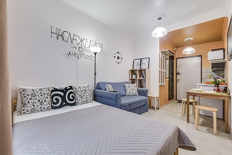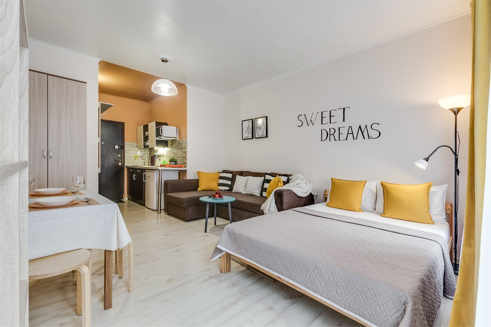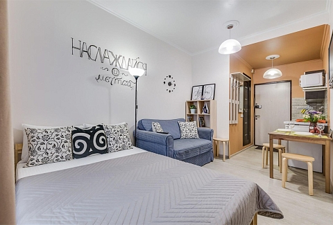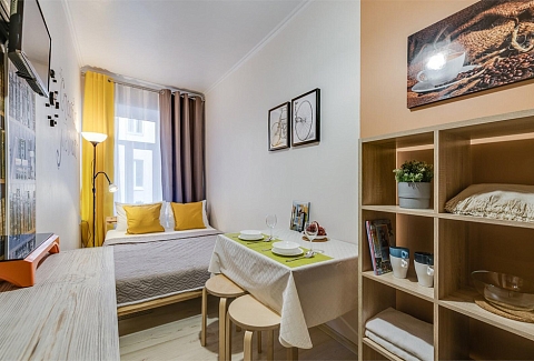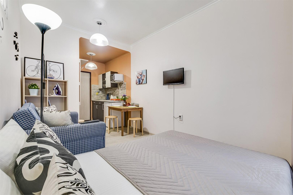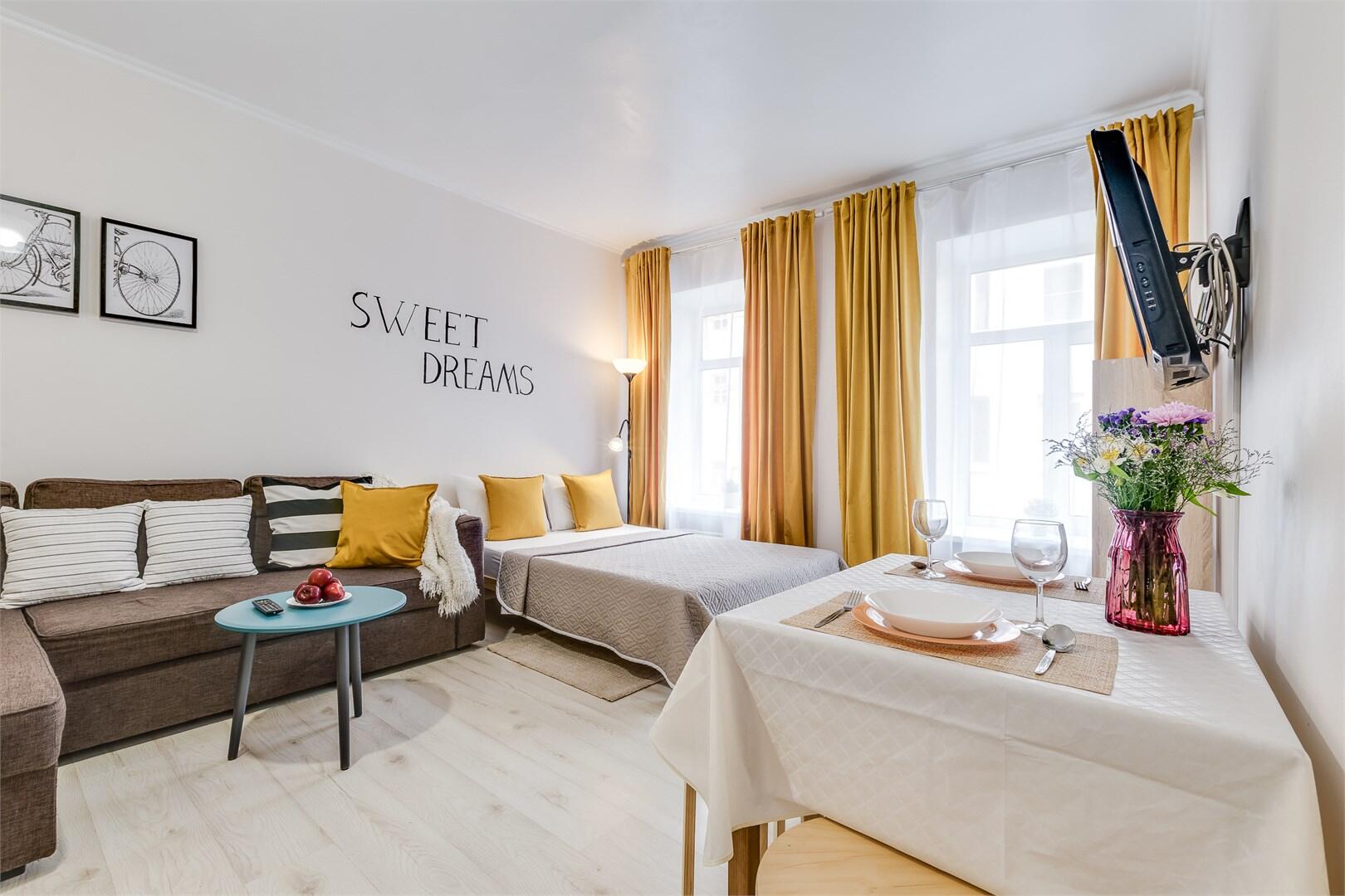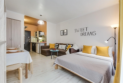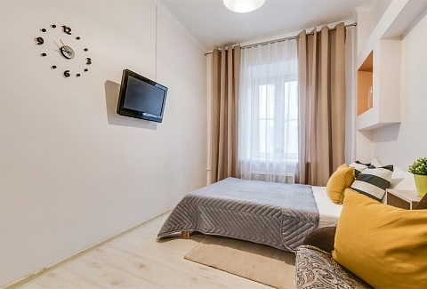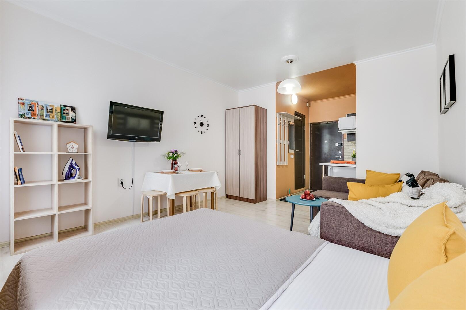 На плоском экране телевизора можно найти фильм для вечернего отдыха.С утра на собственной, полностью оборудованной кухне легко приготовить завтрак: в распоряжении гостей и микроволновая печь, и холодильник, и электрический чайник. За столом в обеденной зоне приятно планировать предстоящий день. А если возникнет желание попробовать местный колорит, прямо по соседству, в этих же дворах, ждут ароматная свежая выпечка из булочной «Пышландия» и теплая атмосфера бара «Север-плюс».