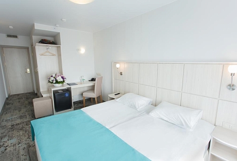 В номере: гардеробная, зеркало, кровати односпальные /одна двуспальная кровать, прикроватные тумбочки, стол для компьютера, стул, шкаф, кондиционер, мини-холодильник, телевизор, телефон, чайная станция