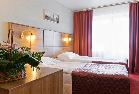 Поездом до ж/д вокзала Московский, далее на рейсовом автобусе №74 до остановки «ул. Кирочная», далее на рейсовом автобусе №105 до остановки «ул. Тарасова», далее пройти пешком 246 м до отеля.