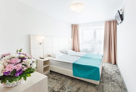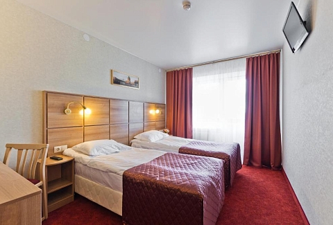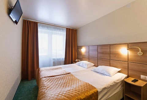 В номере: зеркало, кровати односпальные /одна двуспальная кровать, прикроватные тумбочки, стол, стулья, шкаф, мини-холодильник, телевизор, телефон