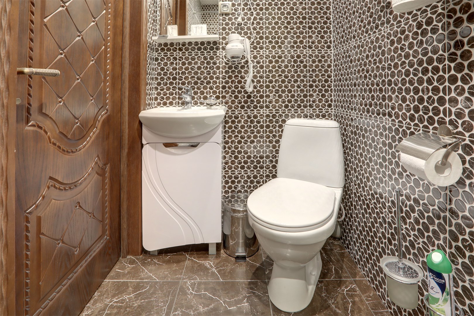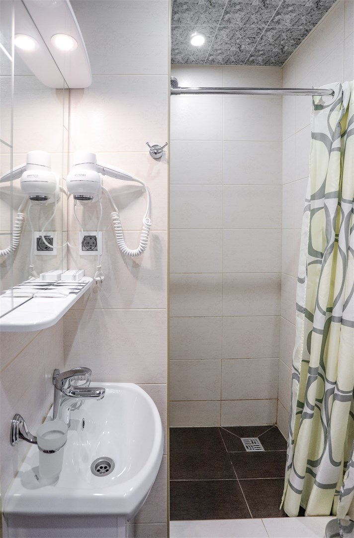 Санузел: с душем, тапочки, туалетные принадлежности, фен