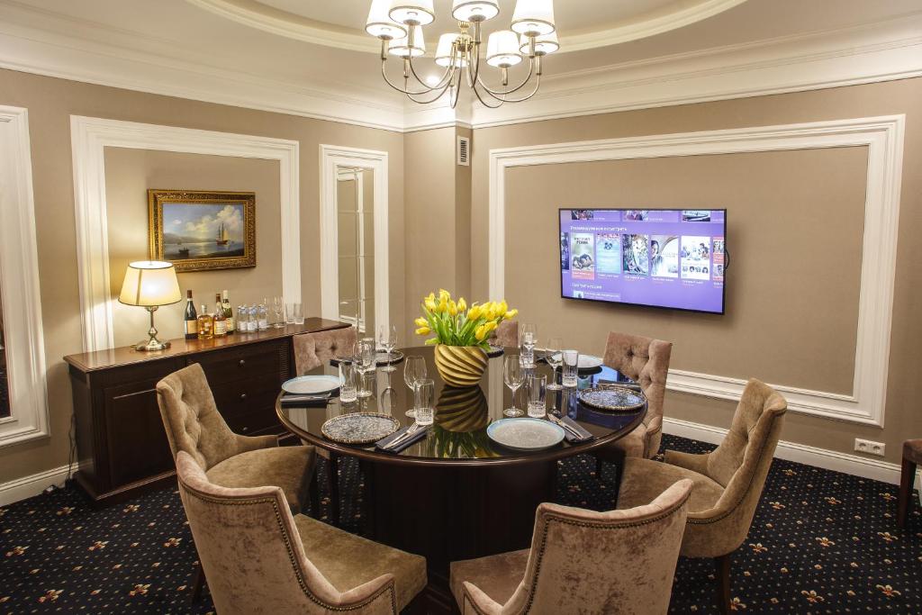 Бутик-отель разместился в трехэтажном историческом здании, расположенном на пересечении Лиговского проспекта и Кузнечного переулка. В распоряжении отдыхающих 28 номеров с изысканными классическими интерьерами. В каждом номере предусмотрен кондиционер, есть ЖК-телевизор, в ванной отдыхающих ожидают косметические наборы и уютные халаты, а номера-апартаменты оснащены мини-кухней. На первом этаже здания работает ресторан, где гости могут заказать себе завтраки, ужины и обеды. Автовладельцы, сделав предварительный запрос, смогут оставить свою машину на крытой парковке за дополнительную плату. Деловые гости оценят услуги бизнес-центра: есть небольшая комната для переговоров, оснащенная оргтехникой.