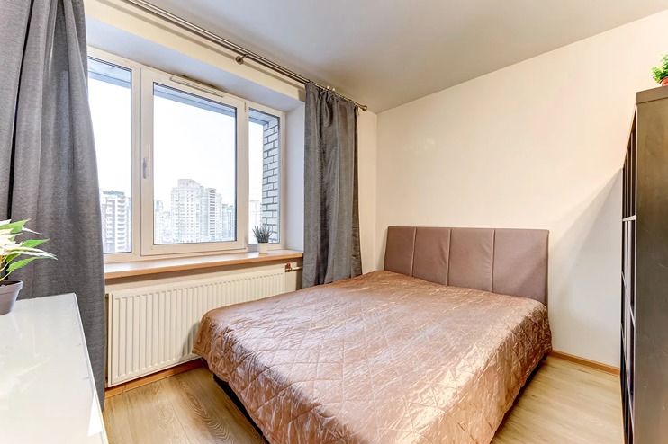 Самолетом до аэропорта Пулково (г. Санкт-Петербург), далее на рейсовом автобусе №39 до остановки «ст. м. Московская», далее на метро до станции «Комендантский проспект», далее пройти 470 м до апартаментов.