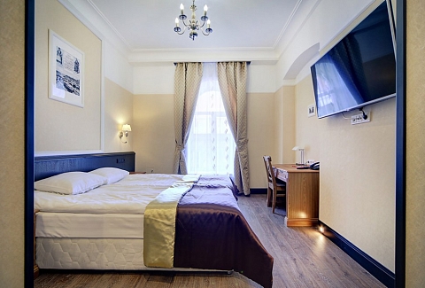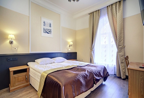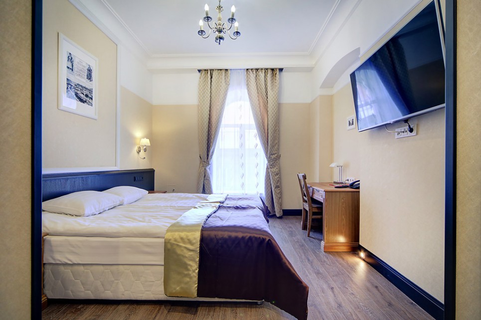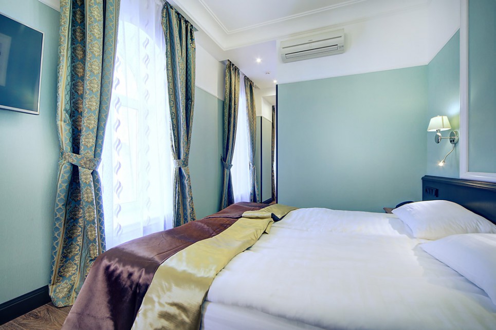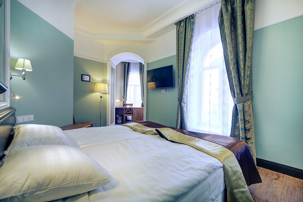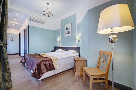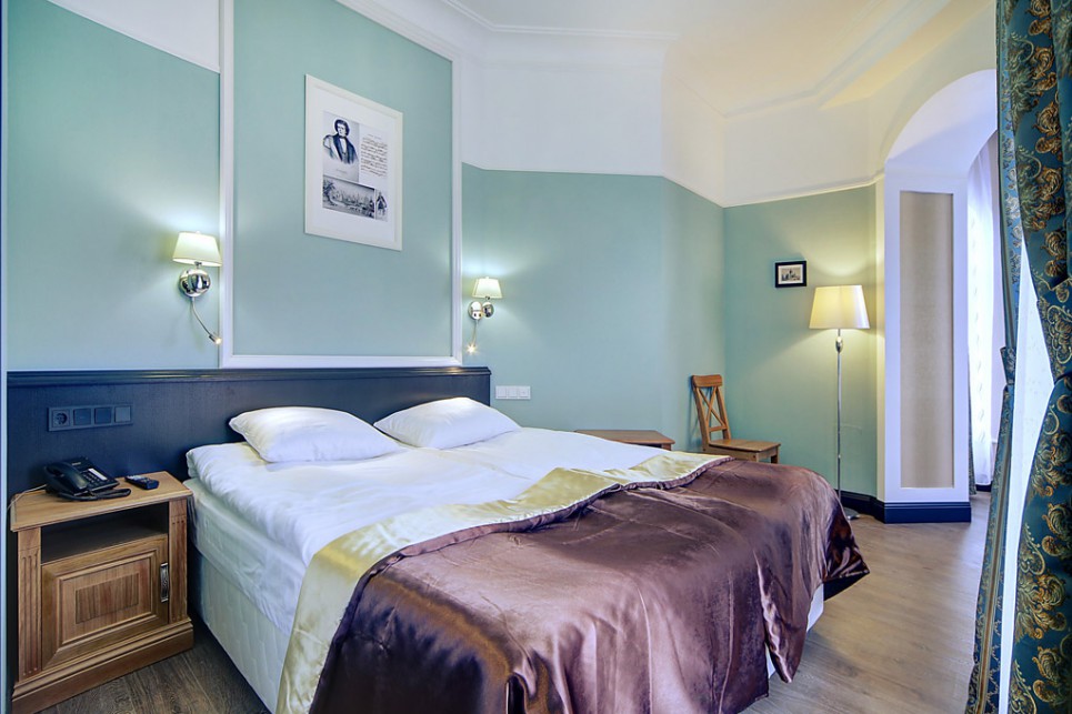 За полчаса неспешной ходьбы можно дойти до Эрмитажа, набережной Невы и Дворцовой площади.Отель занимает четвертый этаж пятиэтажного здания, оснащенного лифтом. Небольшой жилой фонд отеля включает в себя 8 комфортабельных номеров, все они отвечает международным стандартам. В просторных комнатах светлый приятный интерьер, выдержанный в классическом стиле, везде имеется индивидуальный санузел с душем, косметические принадлежности, кондиционер, плазменный телевизор.На пятом этаже работает столовая, там гости могут заказать завтраки или самостоятельно разогреть ужин в микроволновке. Также всем отдыхающим доступны услуги прачечной и беспроводной интернет.