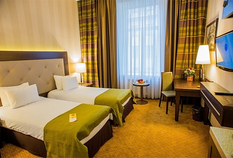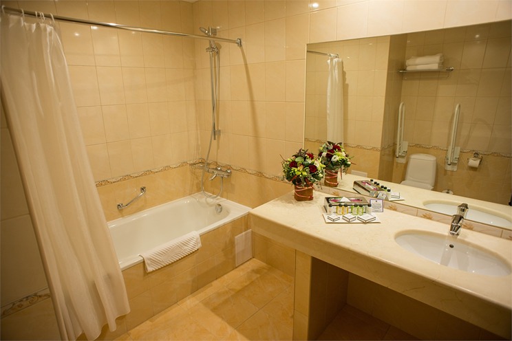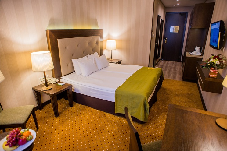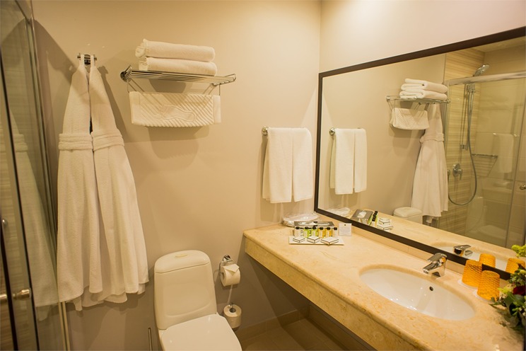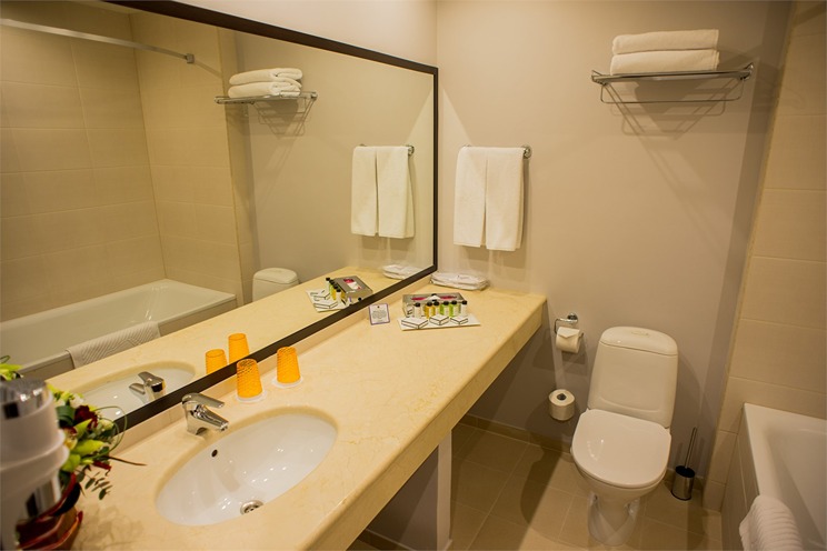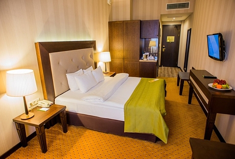 В номере: вешалка, зеркало, кресло, кровати односпальные /одна двуспальная кровать, прикроватные тумбочки, стол, стул, шкаф, гладильная доска, кондиционер, мини-холодильник, сейф, телевизор, телефон, утюг, чайная станция, чайный набор посуды