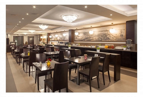 - основной ресторан зал «Атриум» завтраки шведский стол (будни 07:00-10:30, выходные 07:00-11:00)