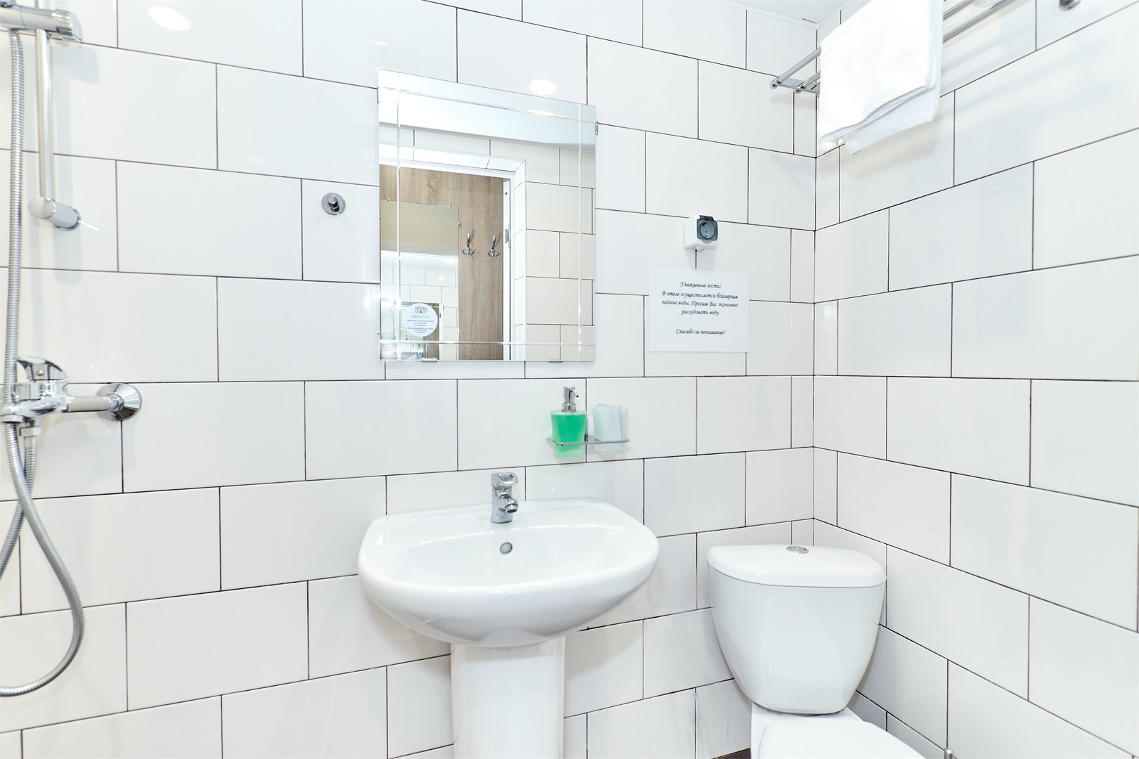 Санузел: с душем, туалетные принадлежности, фен