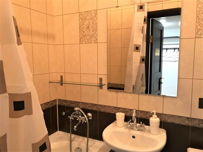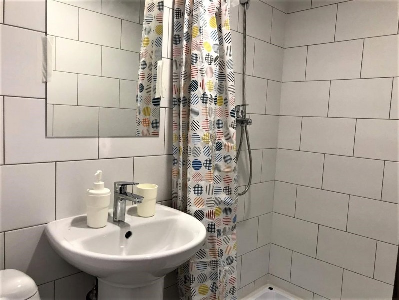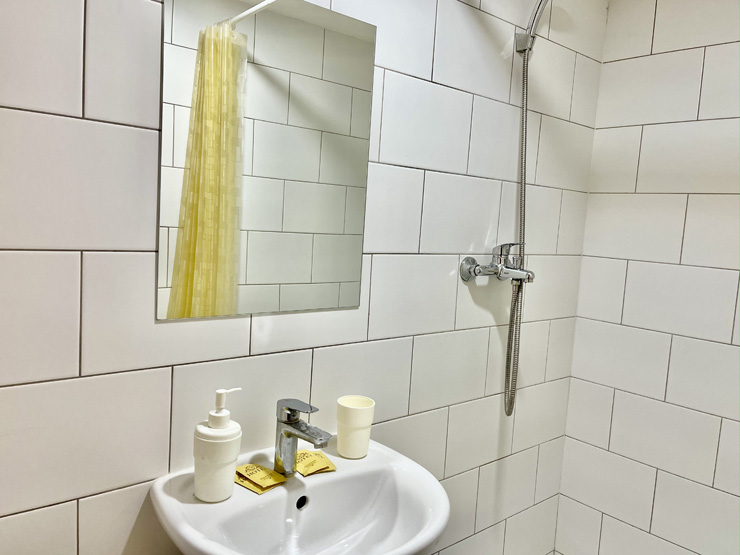 Санузел: с душем, тапочки, туалетные принадлежности, фен
