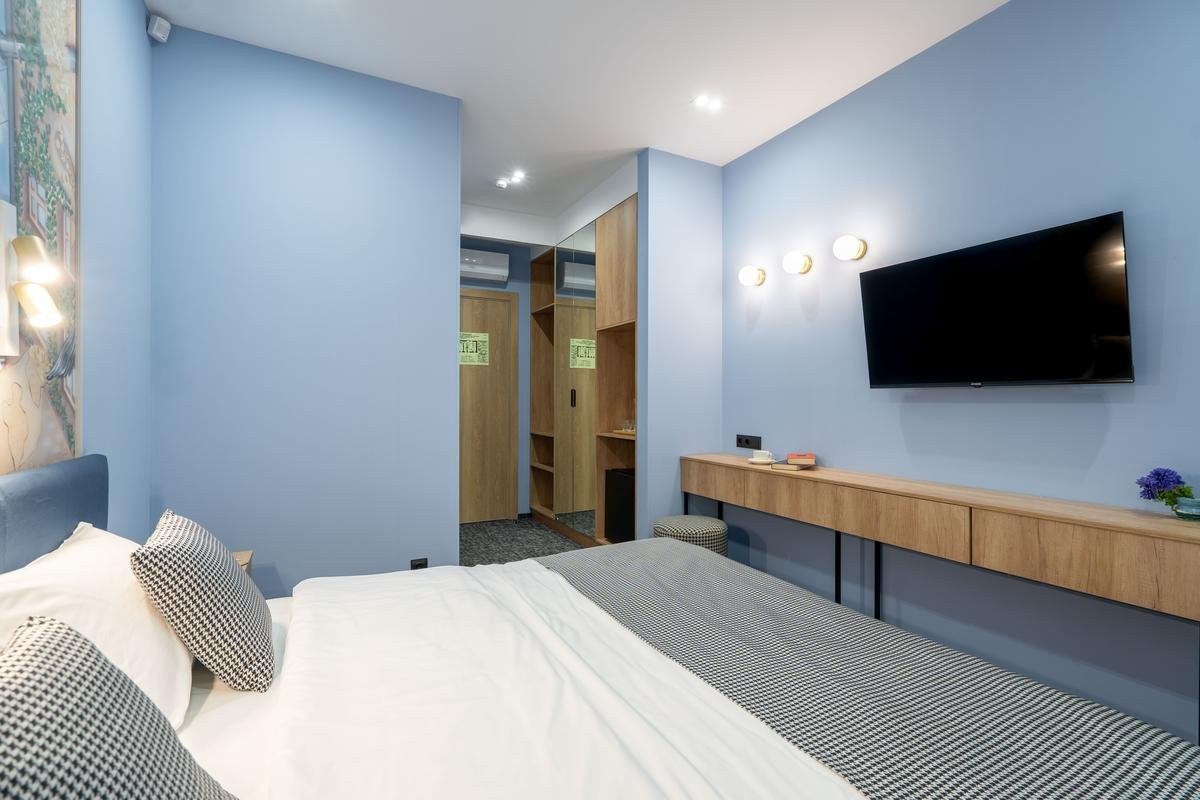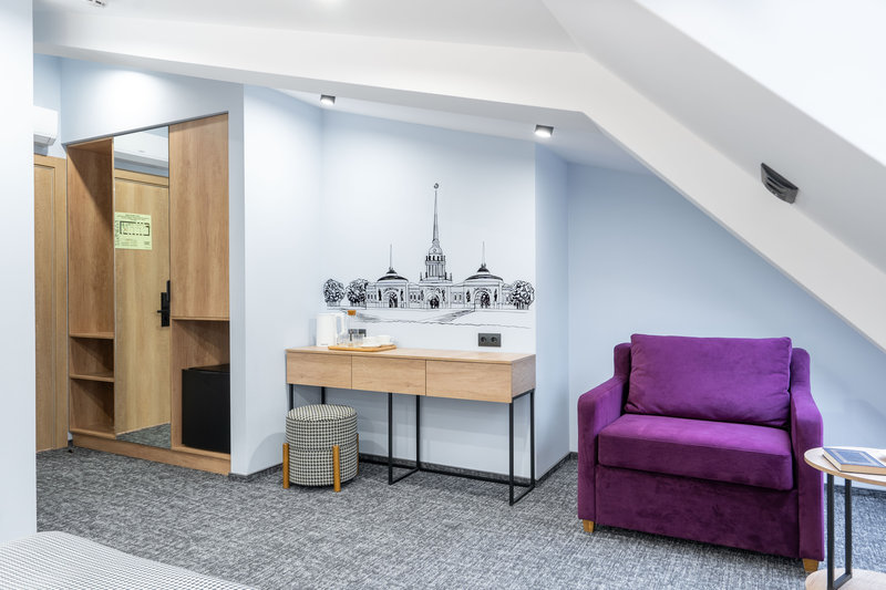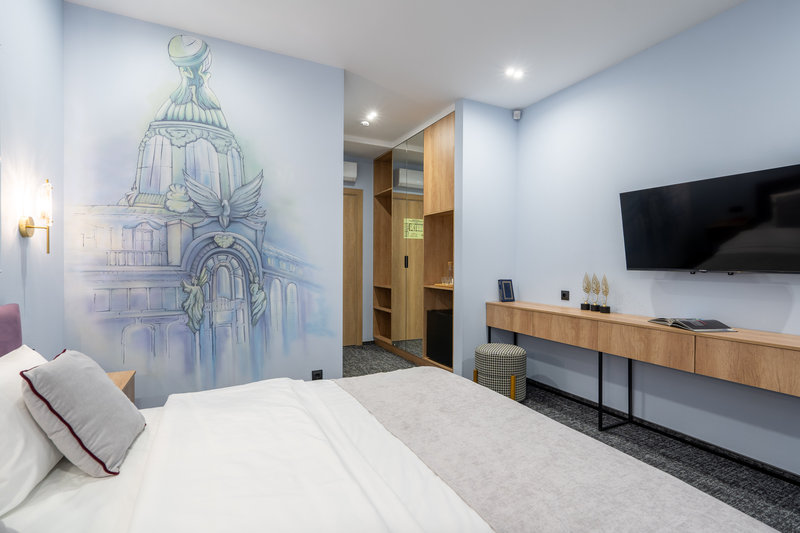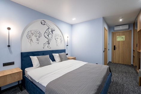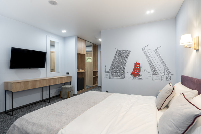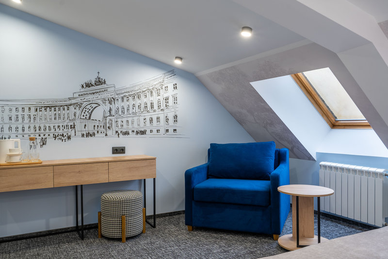 Каждый номер площадью от 16 до 24 квадратных метров оформлен в индивидуальном дизайне, созданном петербургской художницей, и посвящён разным граням города. Во всех номерах есть кондиционер, телевизор, бесплатный Wi-Fi, а также собственная ванная комната с душем и феном. Гостей ждут анатомические матрасы, удобные подушки и шторы блэкаут для комфортного сна. Из окон открывается вид на город или тихий сад.Отель создан для тех, кто хочет окунуться в жизнь Петербурга, оставаясь в центре событий. Здесь каждый может выбрать номер по душе — будь то спокойный зелёный уголок или пространство с видом на знаменитые петербургские крыши. Расположение позволяет легко посещать театральные премьеры, музыкальные фестивали, выставки и городские праздники, а после насыщенного дня возвращаться в уютное пространство, продуманное до мелочей.