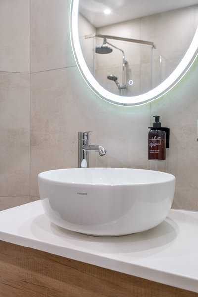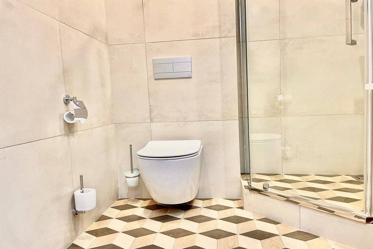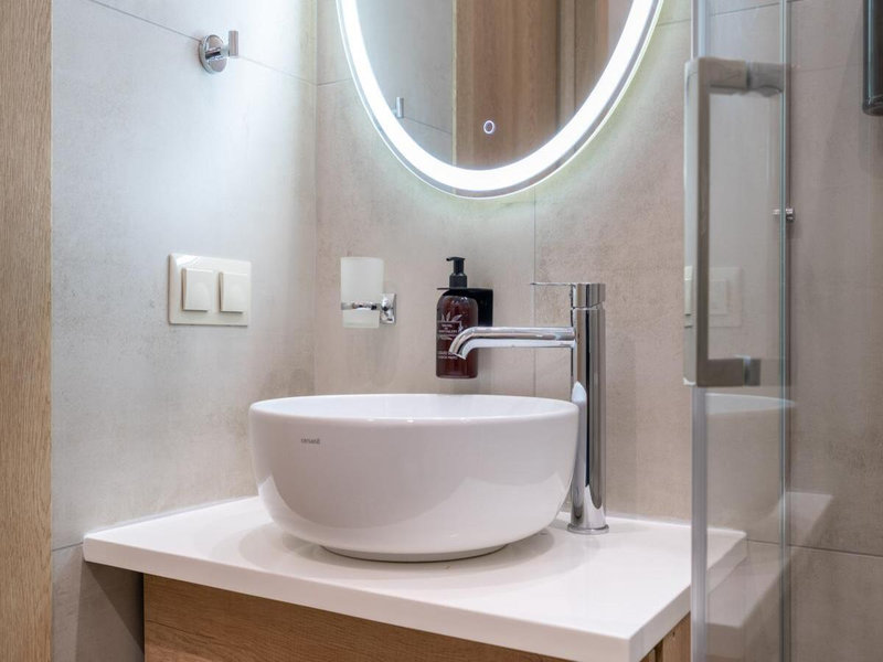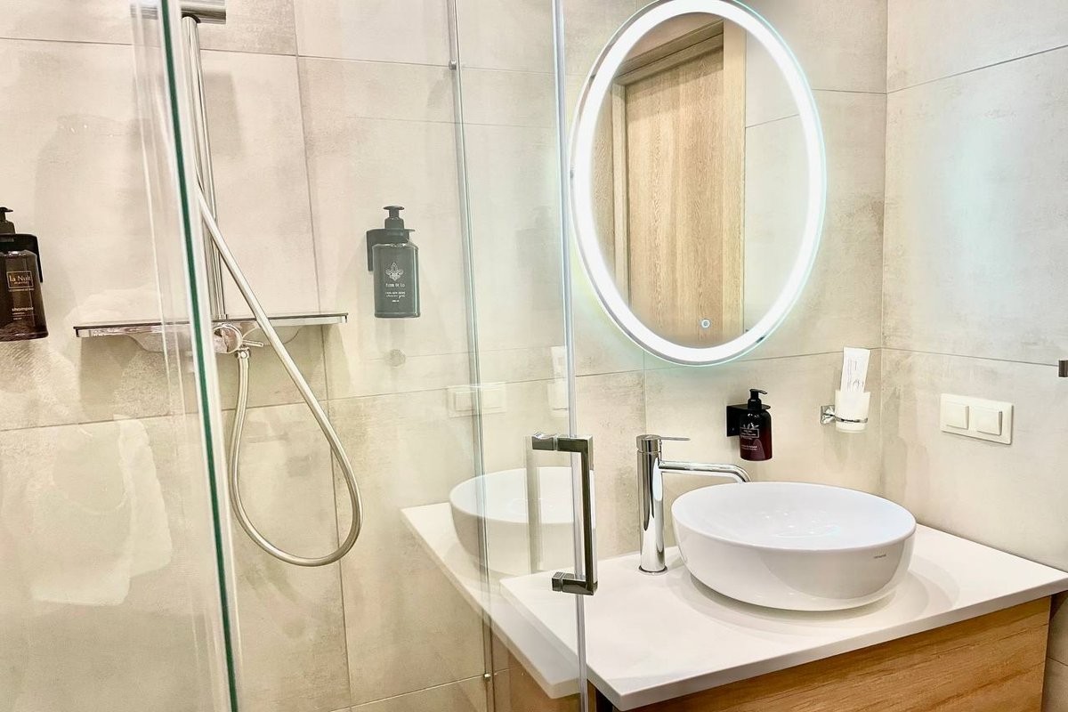 Санузел: с душем, тапочки, туалетные принадлежности, фен, халат