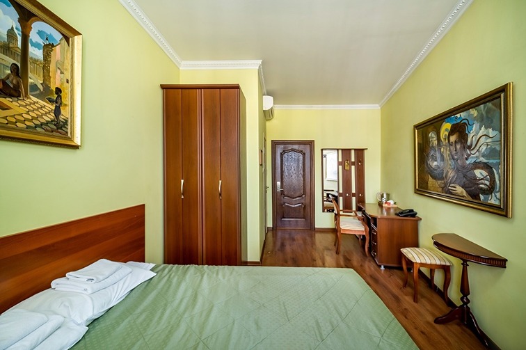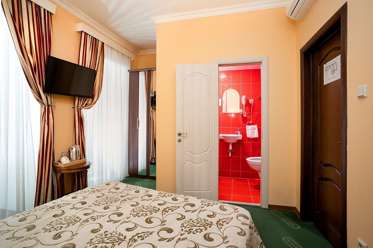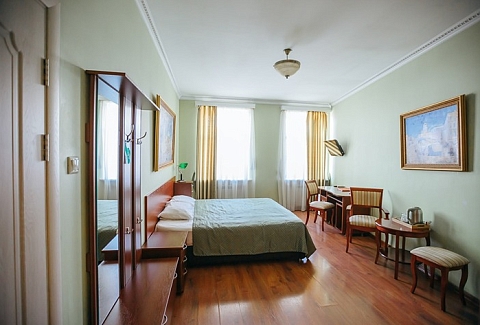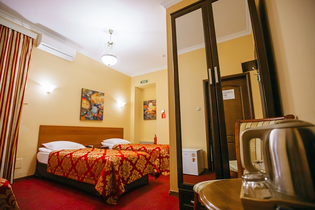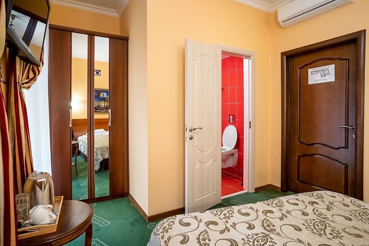 В номере: кровати односпальные /одна двуспальная кровать, стол, стулья, шкаф, кондиционер, мини-холодильник, телевизор, телефон, чайный набор посуды, электрочайник