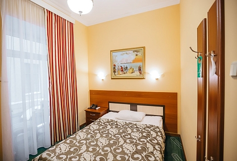 В номере: кровать полутороспальная, стол, стул, шкаф, кондиционер, телевизор, телефон