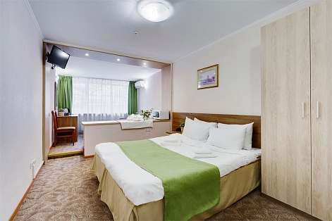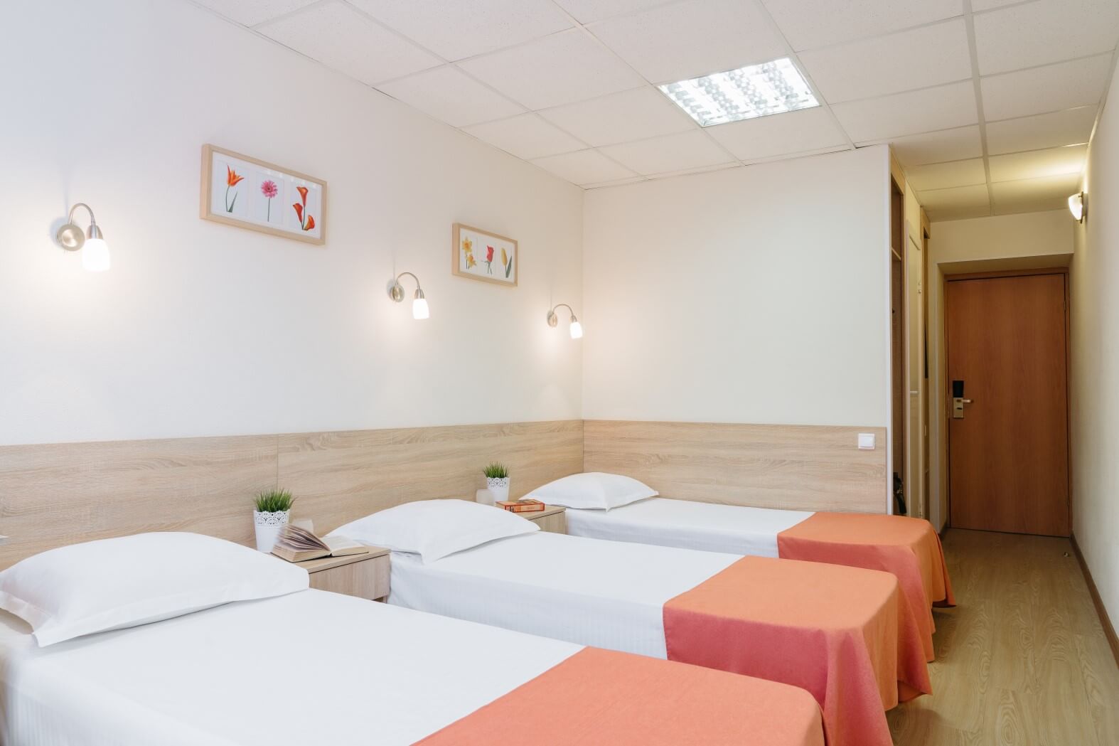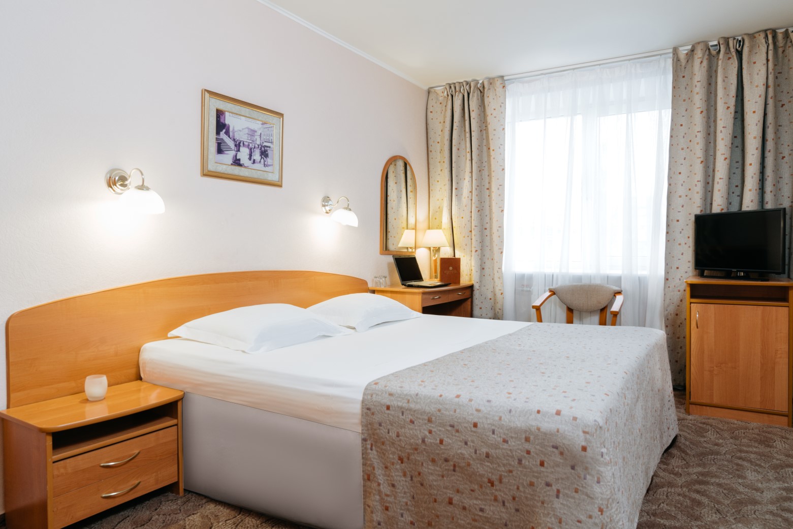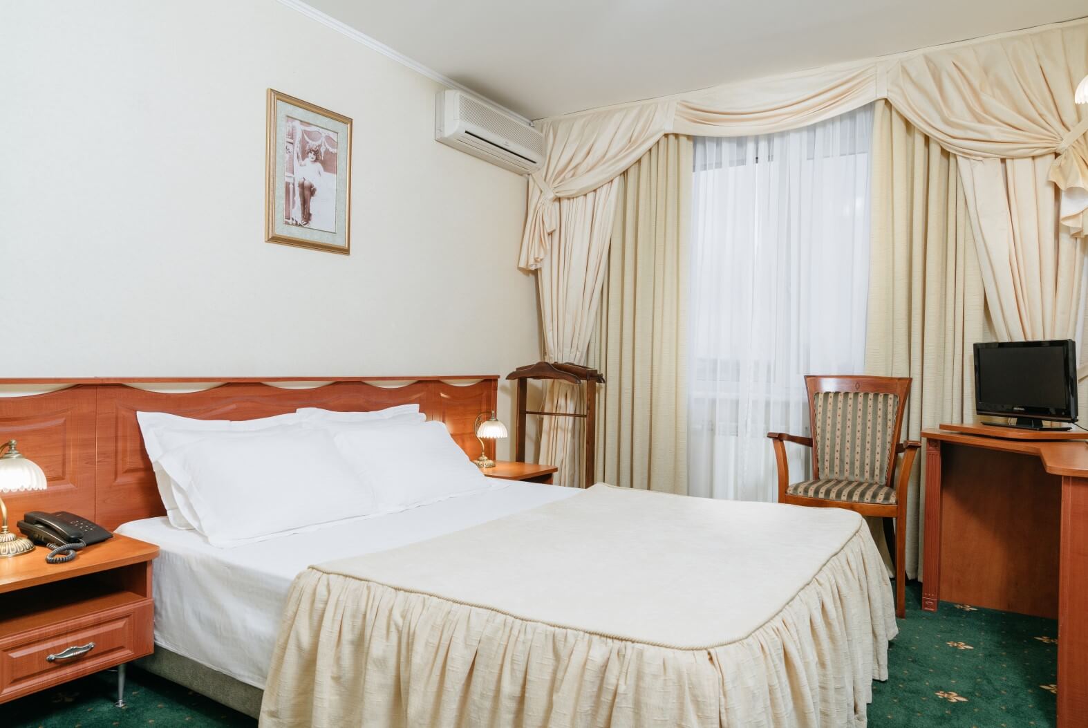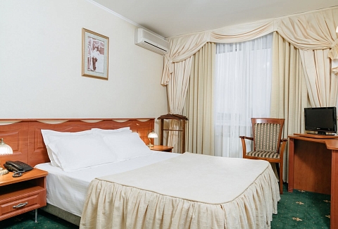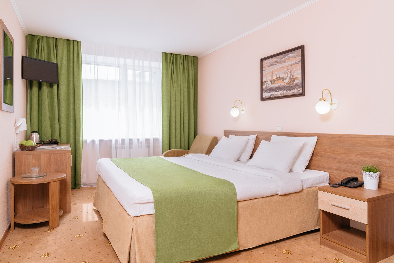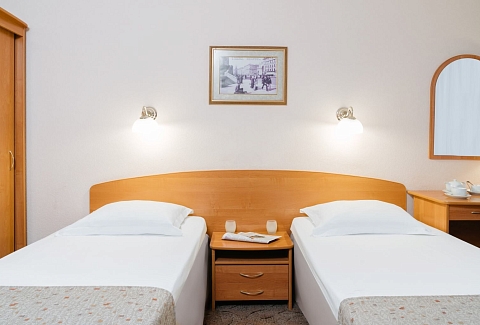 В номере: кровати односпальные /одна двуспальная кровать, прикроватная тумбочка, телевизор, телефон, холодильник