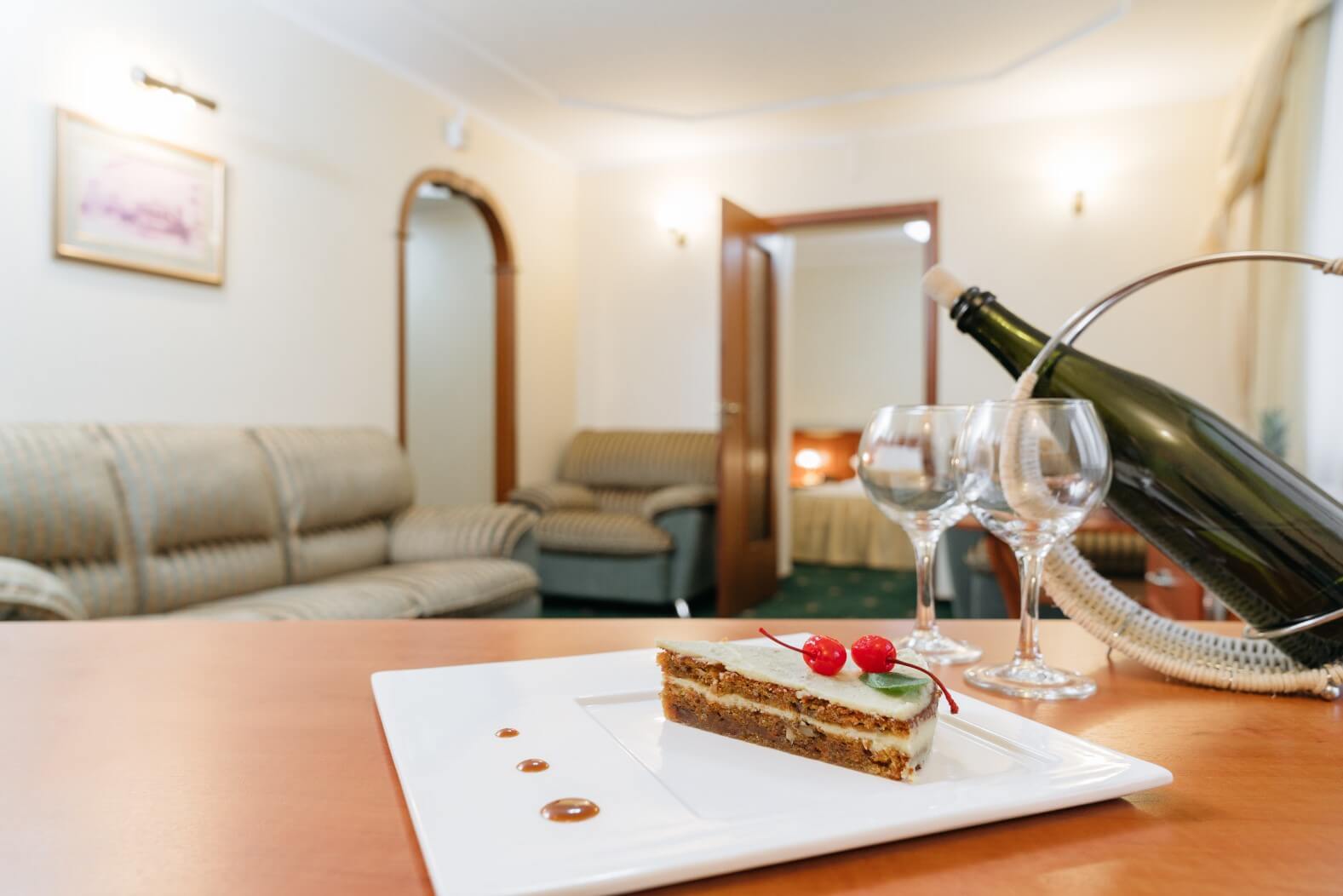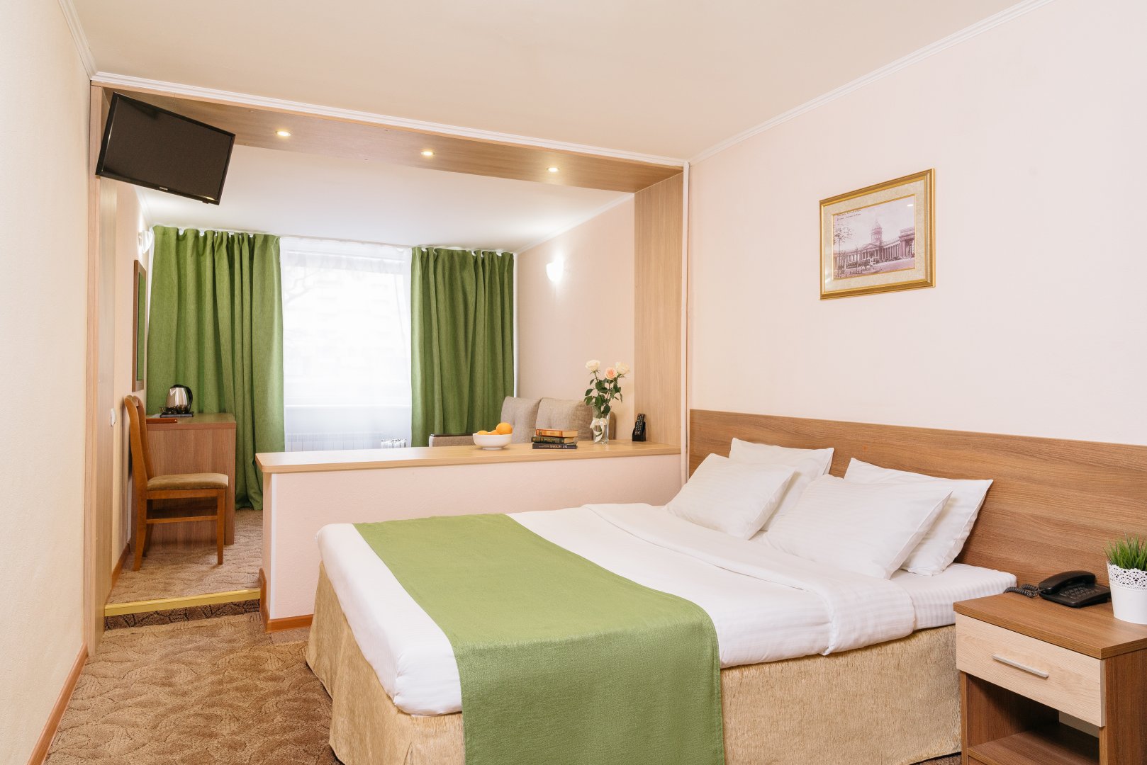 Гостиница предлагает на выбор номера бизнес-класса, стандартные и семейные номера и, конечно же, апартаменты и номера люкс. В каждом номере отеля жильцам предоставляется доступ к Интернету на бесплатной основе, Wi-Fi и кабельное ТВ. Кроме того, имеется телефон, холодильник и фен. Выбирая номер, будь то номер бизнес класса или апартаменты, всем посетителям гостиницы в равной степени гарантируется комфортная обстановка, европейский стиль отделки и меблировка комнат удобной стильной мебелью. Менеджмент гостиницы направлен на удовлетворение всех потребностей посетителей, поэтому всем предлагается система скидок при оплате, будь то WebMoney, расчет картами Visa или MasterCard.На территории гостиницы предусмотрена возможность проведения конференций, деловых встреч и торжеств. Оборудованные конференц-залы, а также два банкетных зала разной вместимости позволят организовать мероприятие без лишних затрат. Ресторанная инфраструктура гостиничного комплекса Отель позволяет организовать фуршет, банкет, кофе-брейк. Расположенные в здании гостиницы ресторан «Almond», залы «Русский», «Юбилейный», а также китайский ресторан, проведут встречу или прием гостей на высшем уровне, а также порадуют гостей вкусной и изысканной едой и экзотическими угощениями.Интересно провести время можно не только в стенах гостиницы. Совсем рядом с комплексом расположен концертный зал «Конти». Неподалёку функционирует один из крупнейших петербуржских клубов.В стоимость проживания входит завтрак «шведский» стол. За дополнительную плату можно воспользоваться услугами салона красоты и солярия, спортзала и тренажёрного зала, небольшого бассейна и сауны, а также взять напрокат велосипед. Также предлагается возможность аренды автомобиля, стирка и глажка белья, заказ проездных документов, такси, трансфера и экскурсий. Сейфовые ячейки расположены у стойки администратора. Для детей предусмотрена игровая комната.