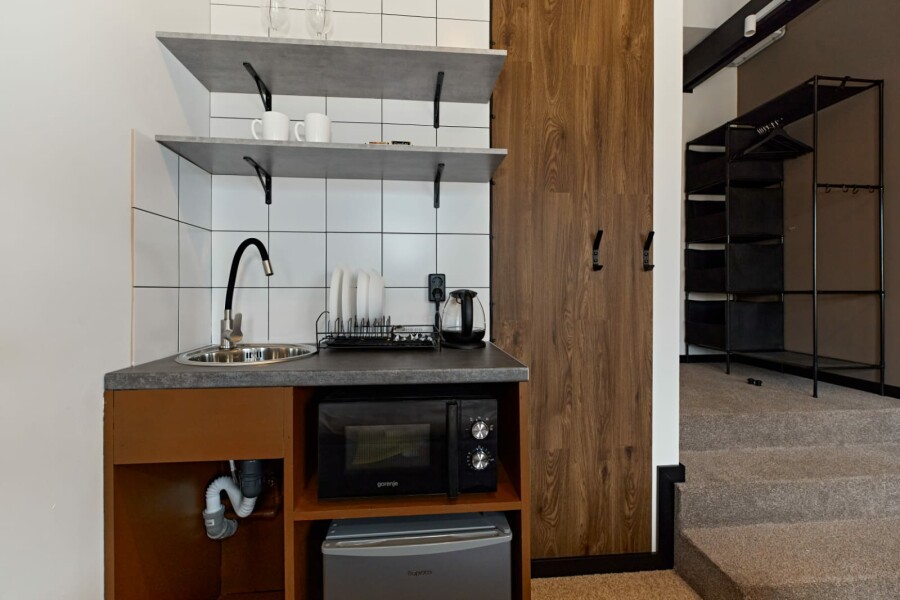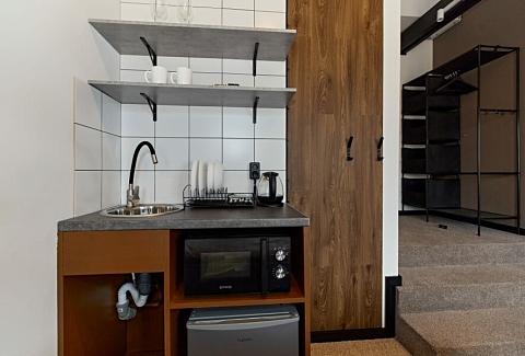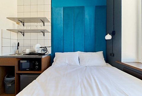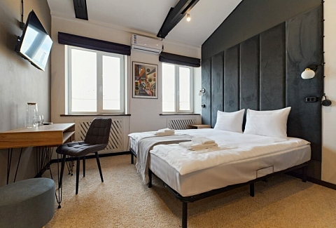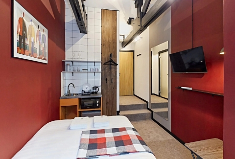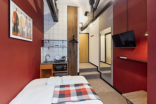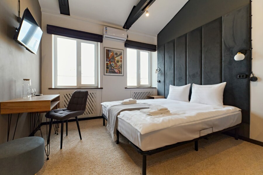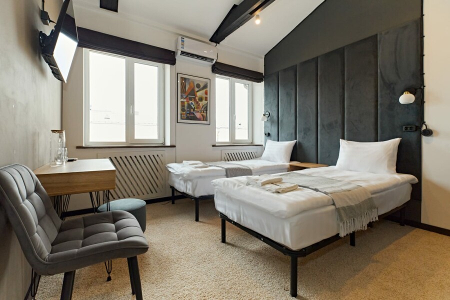 Это не просто район — это Петроградка, место, где архитектура XIX века встречает дух модернизма, а каждая прогулка напоминает листание старинного иллюстрированного тома — с загадками, паузами и внезапными вспышками вдохновения.Гостям предлагаются двухместные номера, каждый из которых — отдельный фрагмент художественной композиции. В интерьере — геометрия форм, смелые цветовые акценты, открытые деревянные балки и высокие потолки, создающие лёгкость даже в компактном пространстве. На стенах — репродукции Малевича, Кандинского, Рихтера: не как декор, а как тихое приглашение подумать, остановиться, почувствовать ритм формы и цвета.Каждый номер — функциональное, продуманное до деталей пространство: удобная кровать с качественным матрасом и постельным бельём, мини-кухня с техникой и посудой, ванная комната с феном и косметическими средствами, Smart TV и бесплатным Wi-Fi. Шумоизоляция, мягкий ковролин и климат-контроль обеспечивают покой и комфорт в любое время года.Гости могут уединиться с книгой в кресле у окна, поработать за столом при естественном свете или просто смотреть на игру геометрических теней на стенах.Popov Art Hotel — не просто остановка. Это короткая, но яркая глава в личной истории, написанная в стиле авангарда.