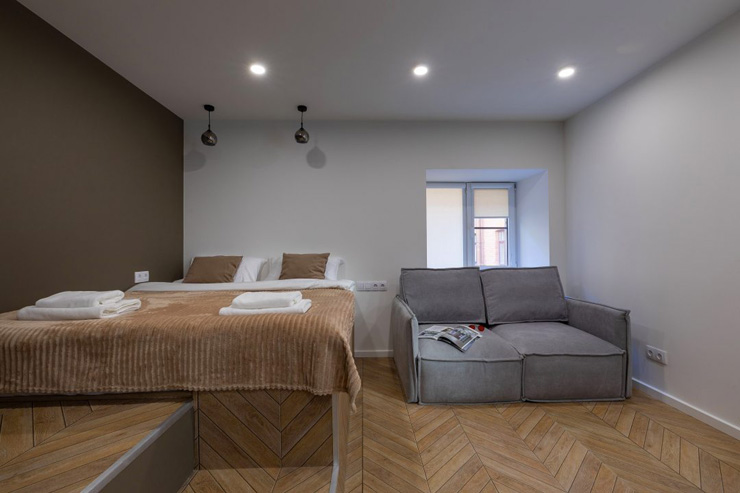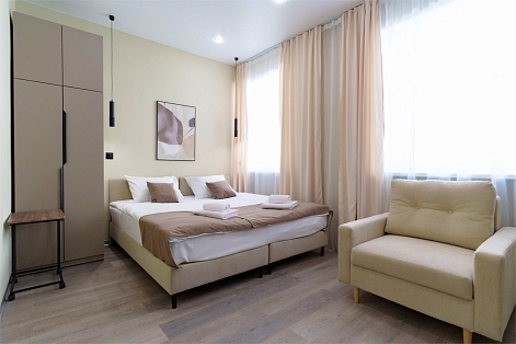 В 6 минутах ходьбы находится станция метро Адмиралтейская. Расстояние до аэропорта составляет 21 километр, до железнодорожного вокзала – 4 километра. Апартаменты располагаются в 3-этажном здании. Все комнаты имеют современный ремонт, оснащены необходимой мебелью и техникой. Санузел с душем или ванной, гостям предоставляются полотенца, туалетные принадлежности. Кухонная зона оснащена электрической плитой, холодильником, микроволновой печью, чайником и набором посуды. В апартаментах работает высокоскоростной интернет. Некоторые номера имеют балкон. В качестве дополнительной услуги можно заказать трансфер.