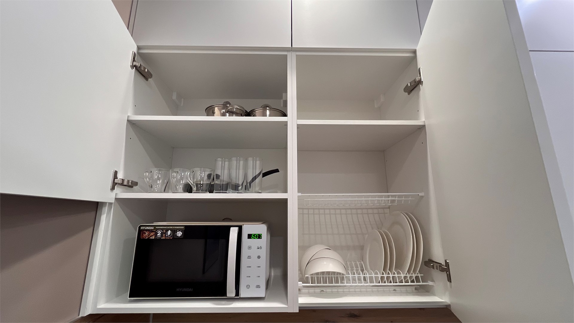 В номере: вешалка, зеркало, кровать двуспальная, стол, стулья, шкаф, микроволновая печь, мини-холодильник, набор посуды, плита электрическая, телевизор, электрочайник