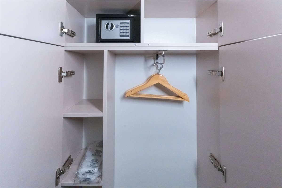 В номере: вешалка, зеркало, кровать двуспальная, стол, стулья, шкаф, микроволновая печь, мини-холодильник, набор посуды, плита электрическая, сейф, телевизор, электрочайник