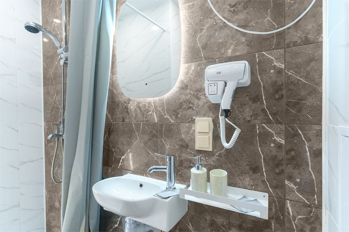 Санузел: с душем, туалетные принадлежности, фен