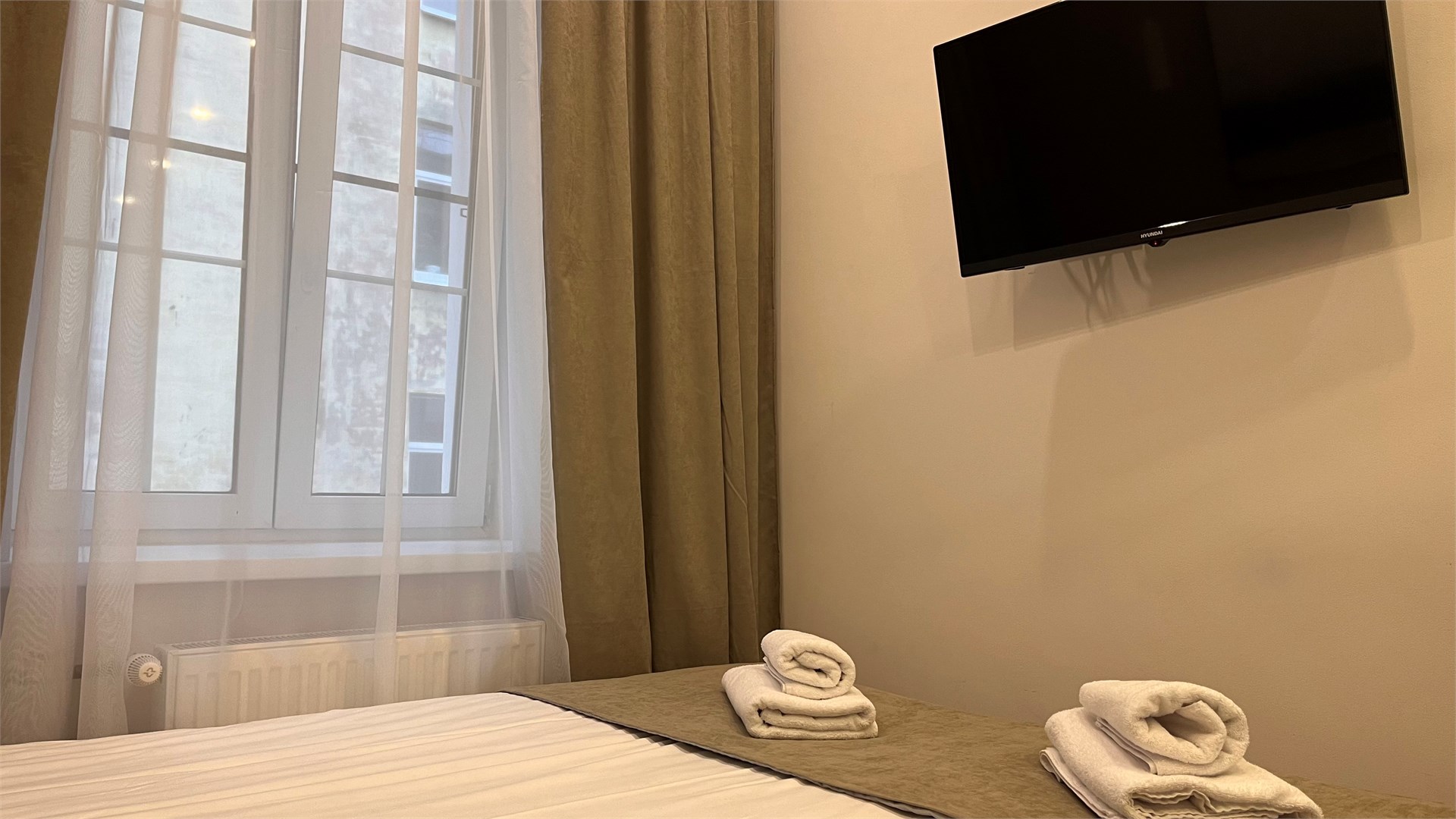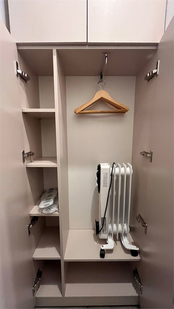 В номере: кровать односпальная, микроволновая печь, мини-холодильник, набор посуды, плита электрическая, сейф, телевизор, электрочайник