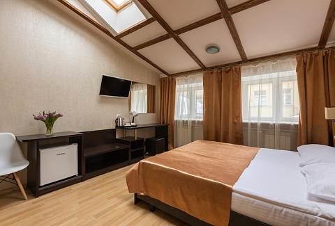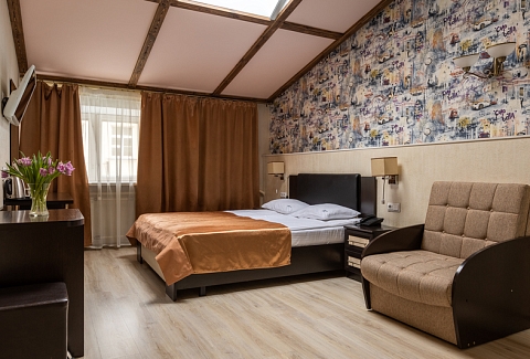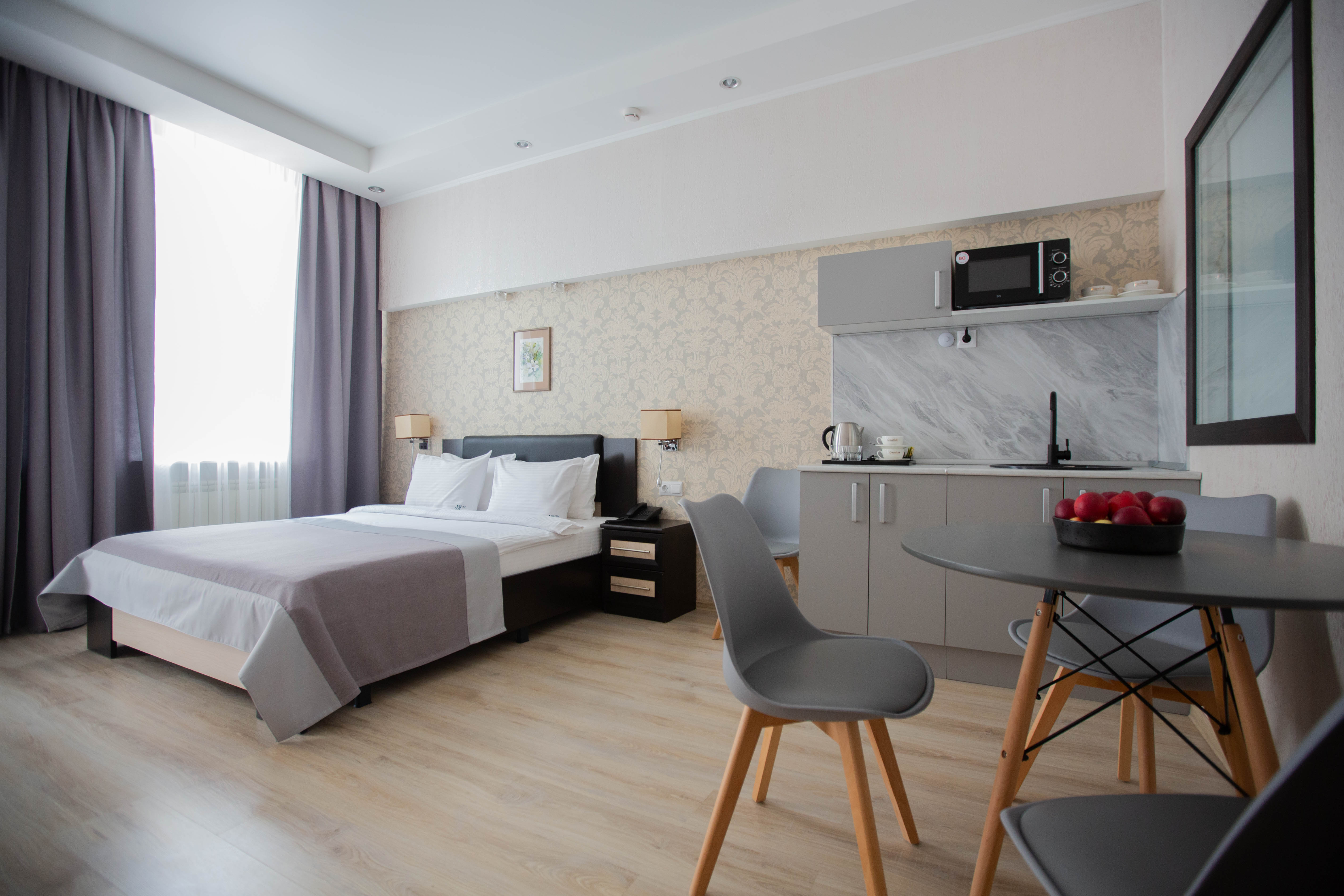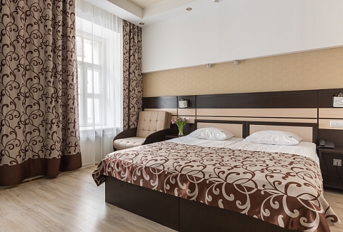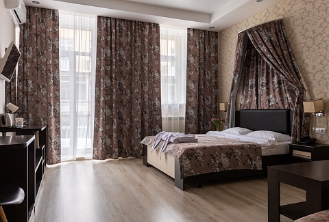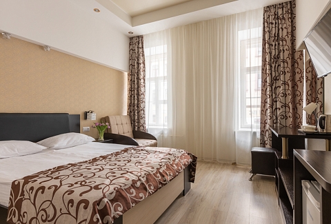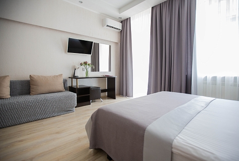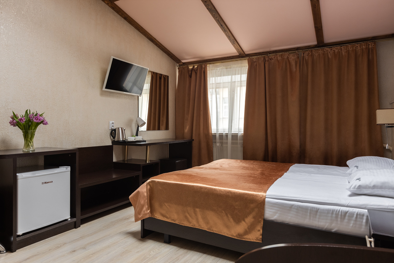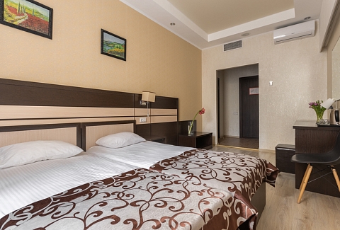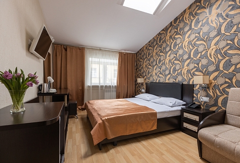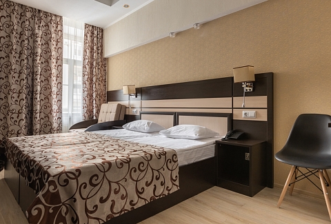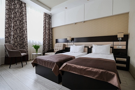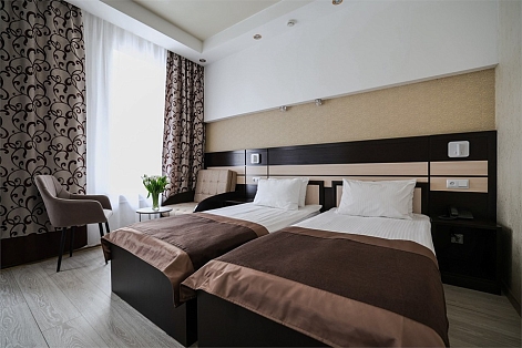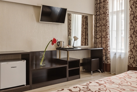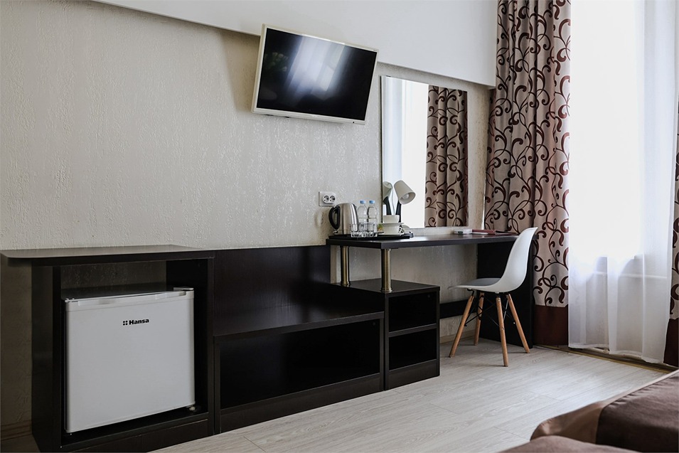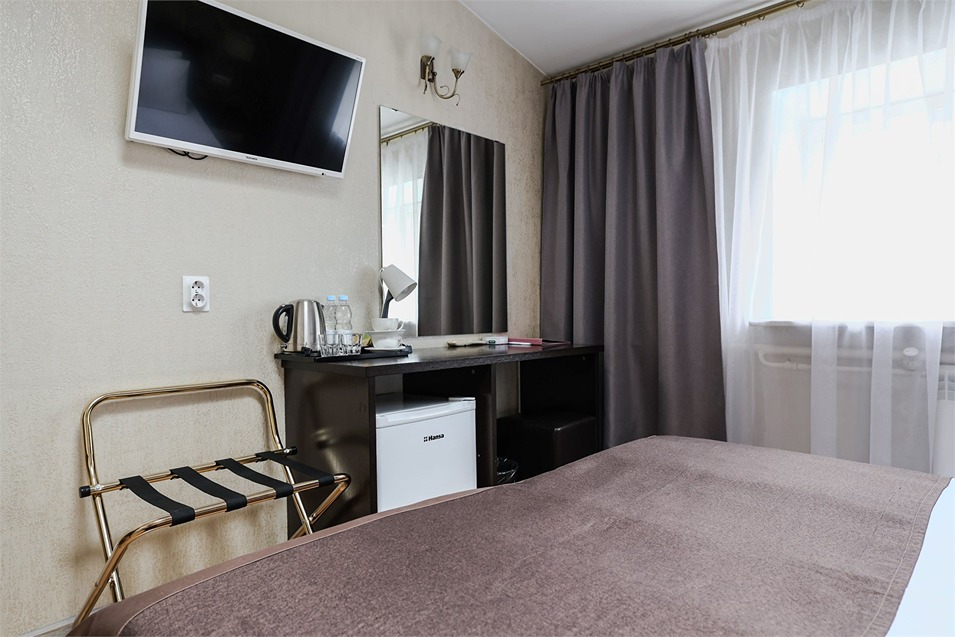Расстояние до аэропорта составляет 24 километра, до железнодорожного вокзала – 3 километра.Номерной фонд расположился в 5-этажном здании с лифтом. В комнатах выполнен современный ремонт, установлены удобные кровати для сна, шкафы для хранения одежды, прикроватные тумбочки. В распоряжении гостей сейф, телевизор со спутниковыми каналами, кондиционер, электрический чайник, мини-холодильник. Санузел индивидуальный для каждого номера, с душем, ванной или джакузи, полотенцами, тапочками и туалетными принадлежностями. На территории отеля функционирует кафе. Крупногабаритные вещи можно сдать в камеру хранения багажа. В гостинице работает высокоскоростной интернет. Возможна установка детских кроваток в номер.