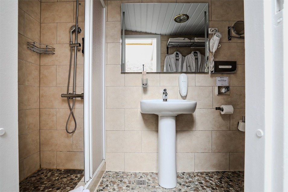 Санузел: с душем, тапочки, теплый пол, туалетные принадлежности, фен, халат
