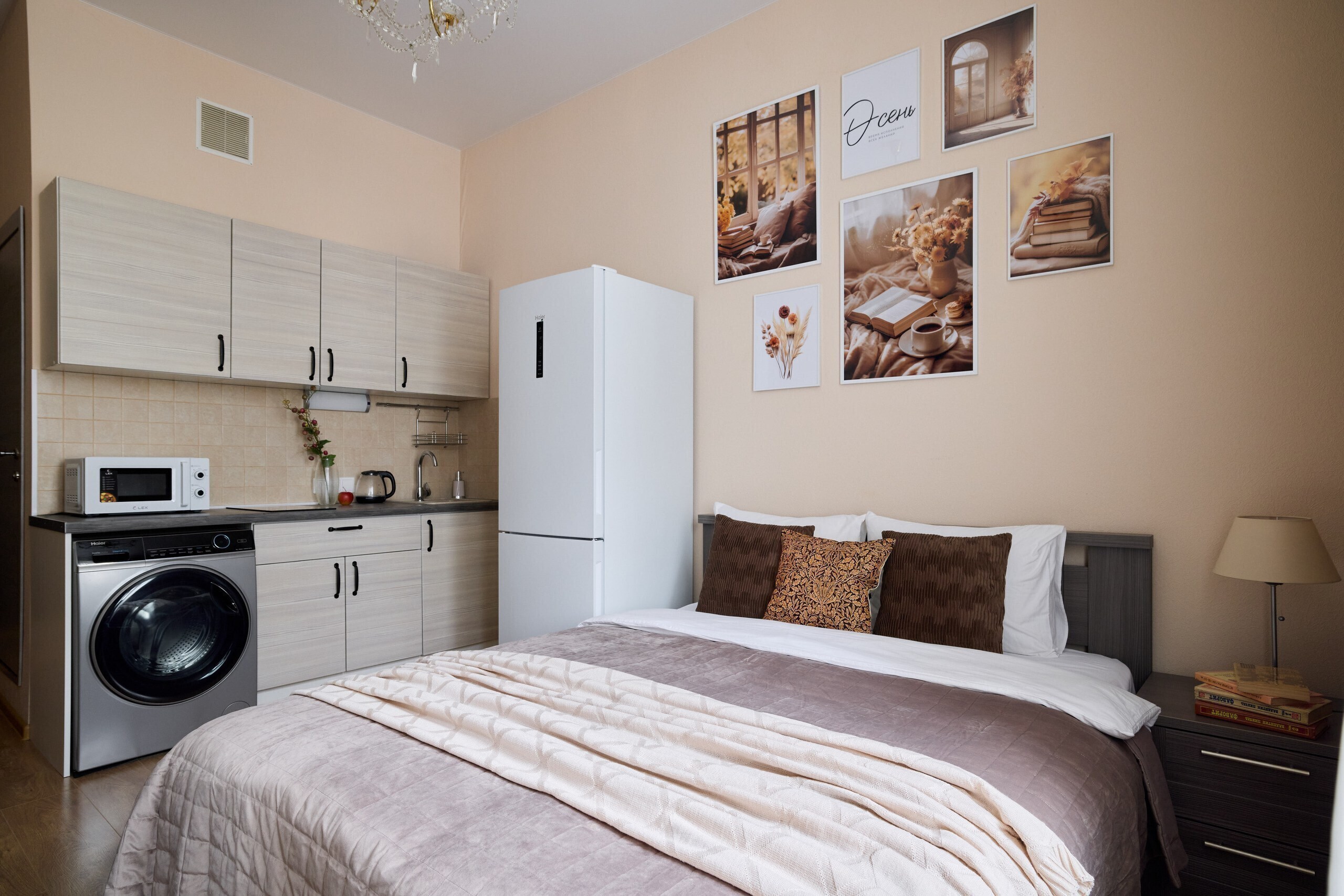 В шаговой доступности — остановки общественного транспорта, кафе и магазины. Это идеальное место для тех, кто хочет жить в атмосфере старого города, оставаясь вблизи от главных достопримечательностей.Каждый из апартаментов оснащён всем необходимым: удобное спальное место, свежее постельное бельё, полотенца и средства личной гигиены. Кухня полностью оборудована посудой, кухонными приборами и всеми принадлежностями для приготовления пищи. В ванной комнате есть стиральная машина, сушилка для белья, фен, утюг с гладильной доской. Для работы и досуга предусмотрены высокоскоростной Wi‑Fi и телевидение со Smart TV.Эти пространства созданы для тех, кто ценит чистоту, уют и самостоятельность. Здесь можно наслаждаться атмосферой Васильевского острова, возвращаясь после прогулок в продуманное и тёплое место, где каждая деталь работает на ваш комфорт.