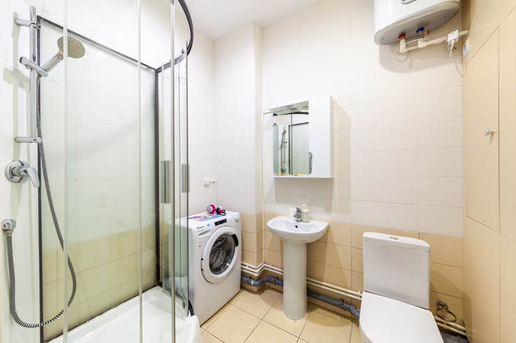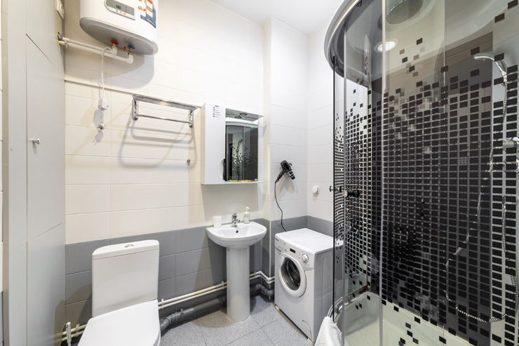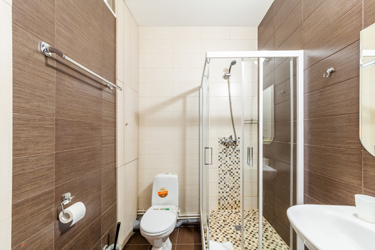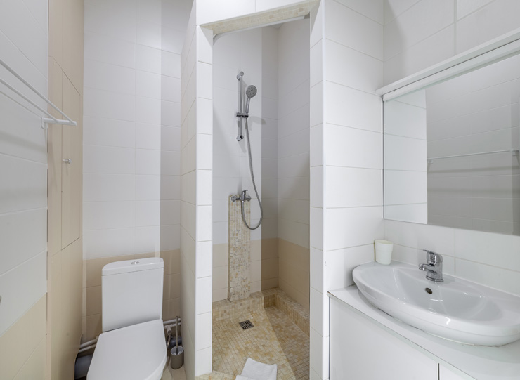 Санузел: с душем, туалетные принадлежности, фен