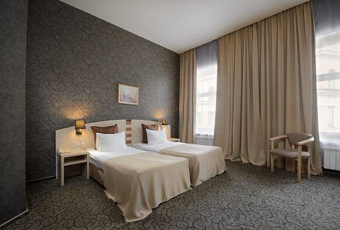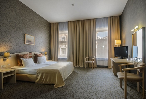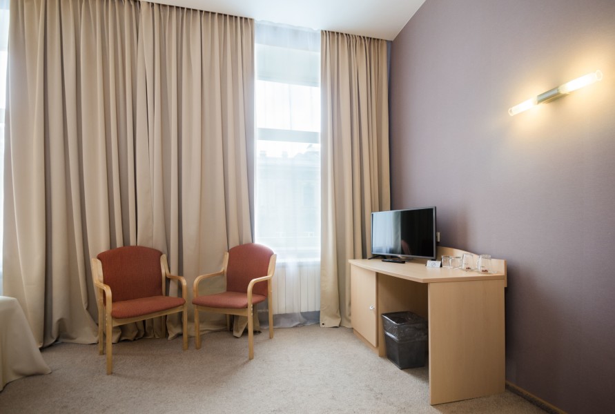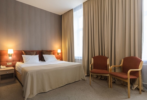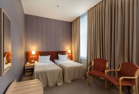 В номере: зеркало, ковровое покрытие, кровати односпальные /одна двуспальная кровать, прикроватные тумбочки, стол, стулья, шкаф, кондиционер, мини-холодильник, сейф, телевизор, телефон