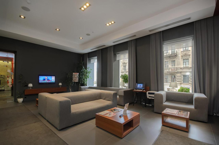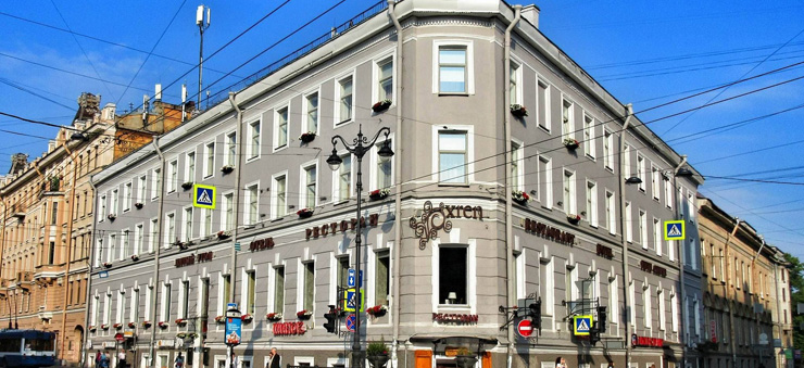 Поездом до ж/д вокзала Московский, далее на метро до станции «Владимирская», далее пройти 570 м до отеля.
