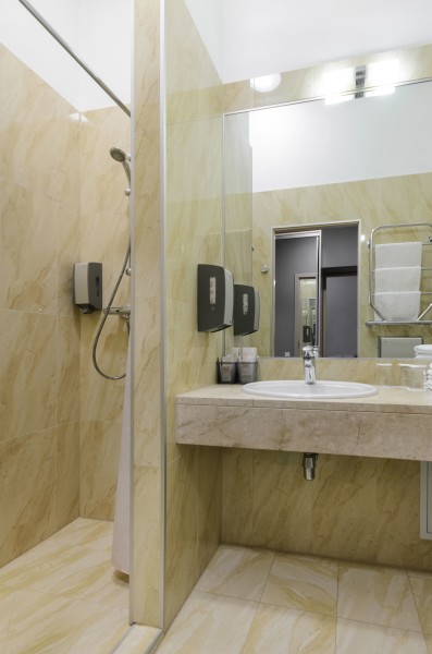 Санузел: с душем, тапочки, умывальник на этаже, фен