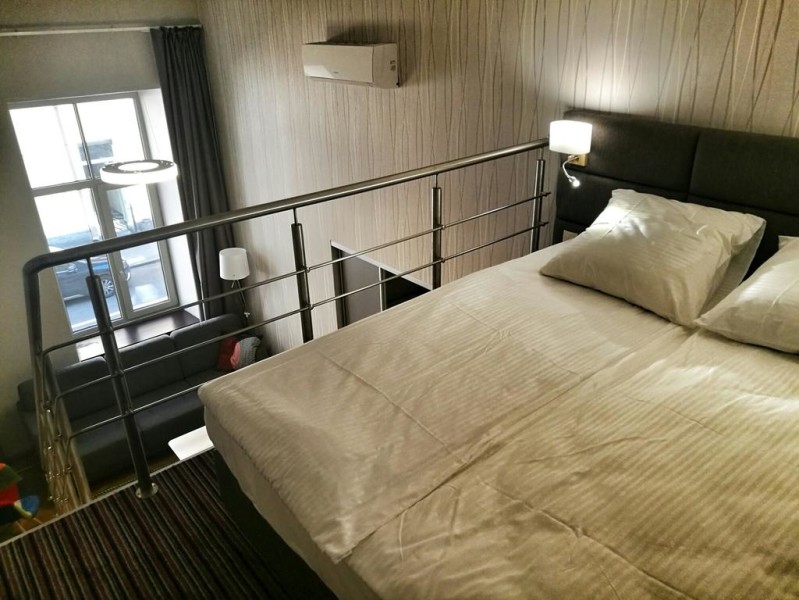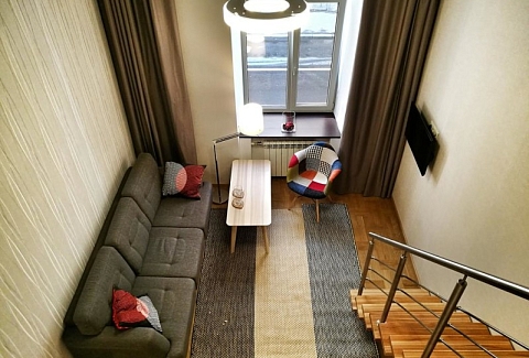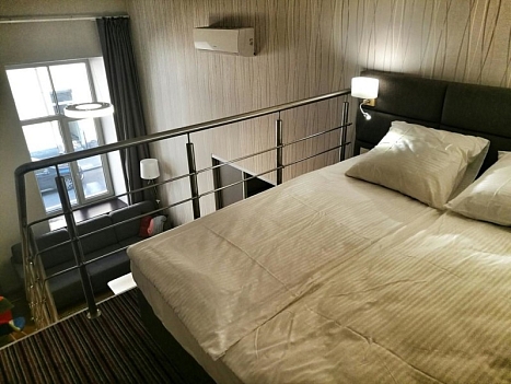 В номере: диван раскладной, зеркало, кровать двуспальная, стол, стулья, шкаф, кондиционер, микроволновая печь, мини-холодильник, набор посуды, плита электрическая, телевизор, телефон, электрочайник