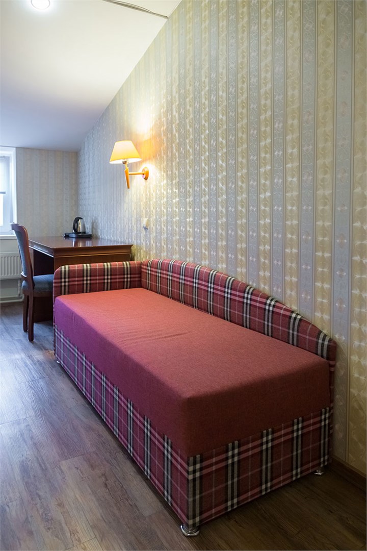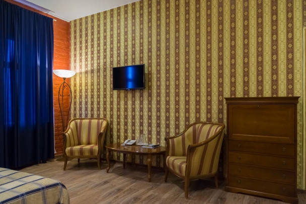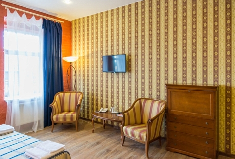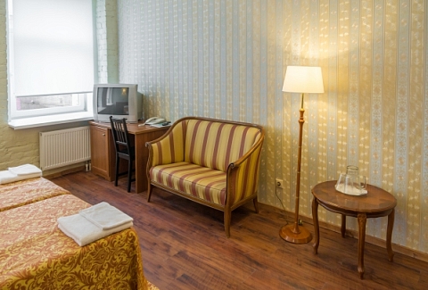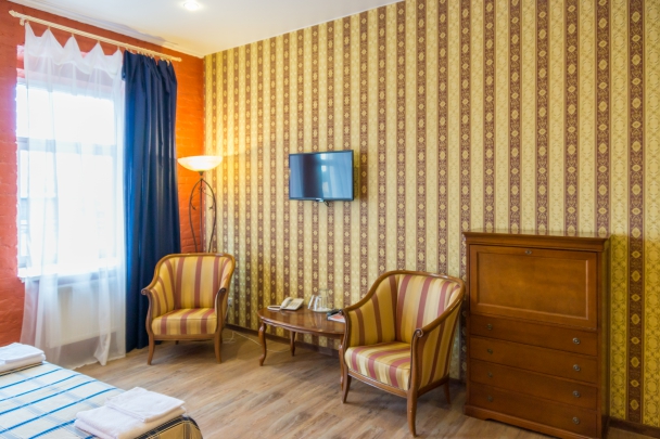 Дорога до автовокзала и Витебского вокзала займет не более 5 минут, а до туристического центра можно доехать минут за 20. Такое расположение отлично подойдет как для туристов, так и для тех гостей, кто приехал в Петербург с деловым визитом.Отель расположился в историческом 5-ти этажном здании — бывшем доходном доме. Жилой фонд включает в себя 59 номеров разной категории комфорта, в том числе и просторные Апартаменты, с оборудованной мини-кухней. Все номера оснащены санузлом с душевой кабиной, телевизором и мини-холодильником, а в комнатах приятный классический интерьер с элементами стиля лофт.В цокольном этаже отеля расположено кафе, где по утрам для отдыхающих накрываются завтраки. Гостям доступны услуги прачечной, беспроводной интернет, а на ресепшене можно арендовать велосипеды для прогулок по городу.