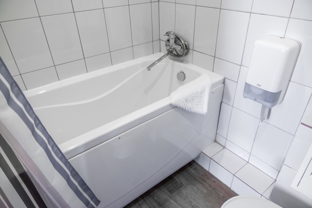 Санузел: с ванной, тапочки, туалетные принадлежности, фен