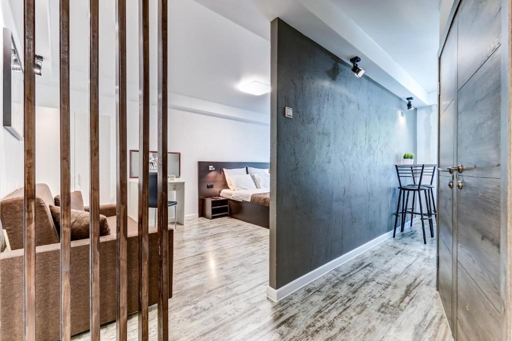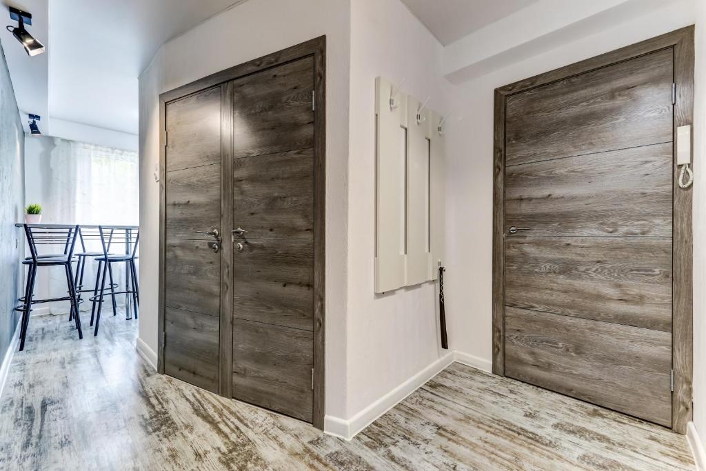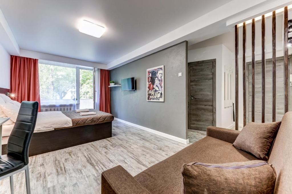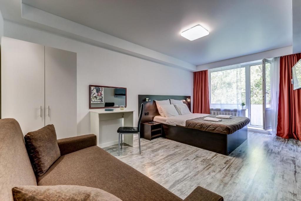 Поездом до ж/д вокзала Московский (г. Санкт-Петербург), далее пройти 420 м до станции метро «Площадь Восстания», далее на метро до станции «Ленинский проспект», далее на автобусе №256 до остановки «Пулковская улица», далее 450 м до апартаментов.