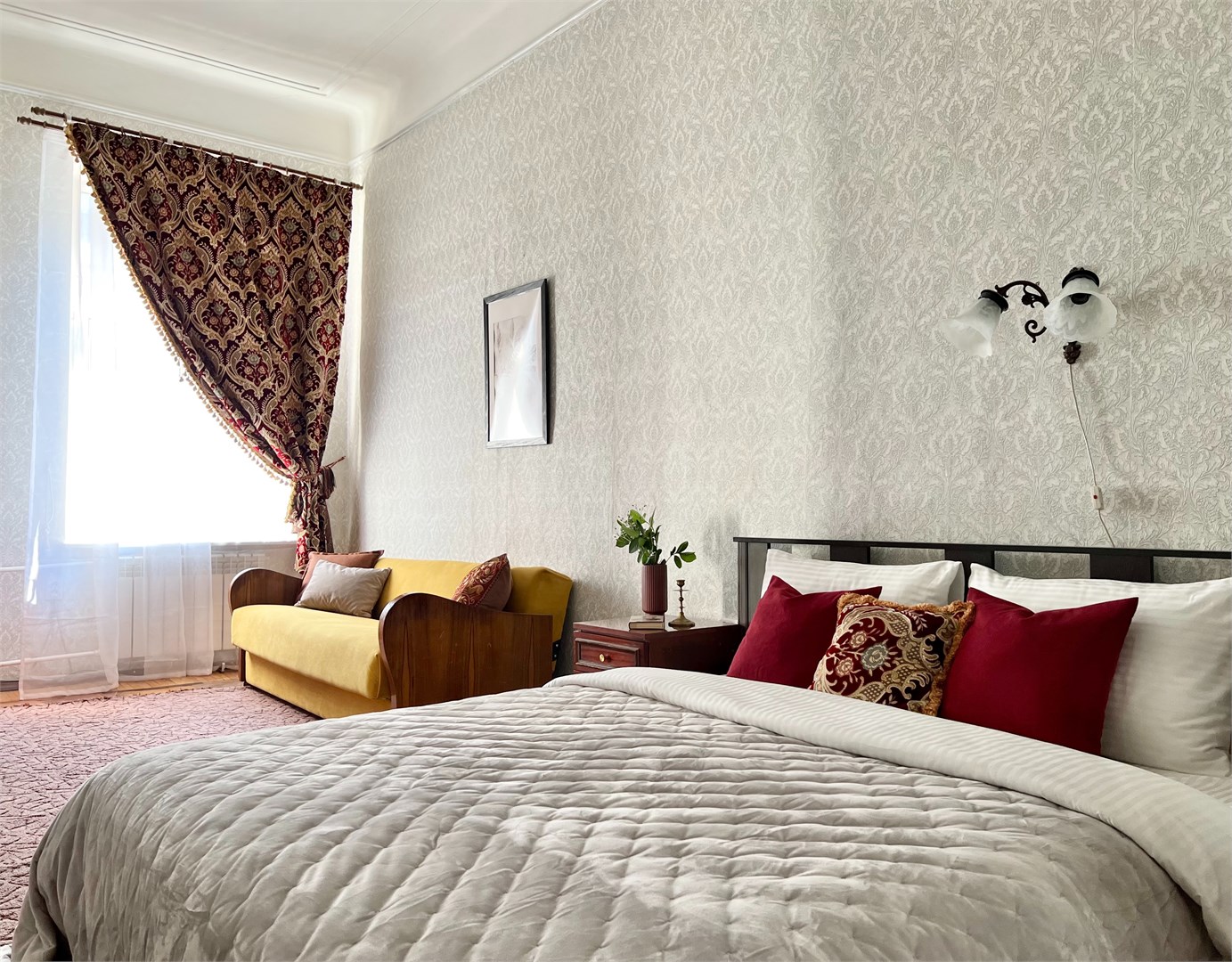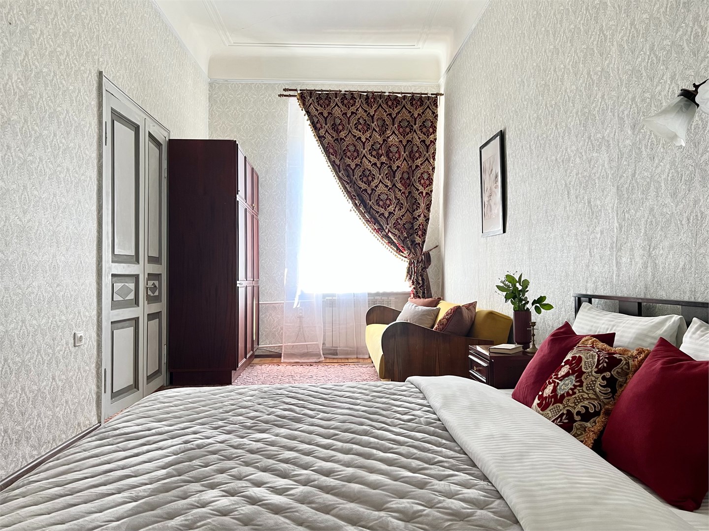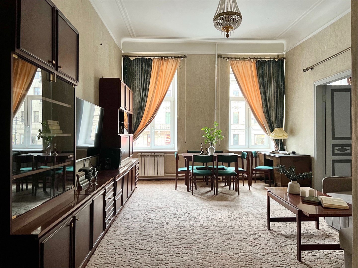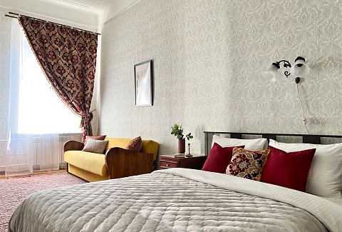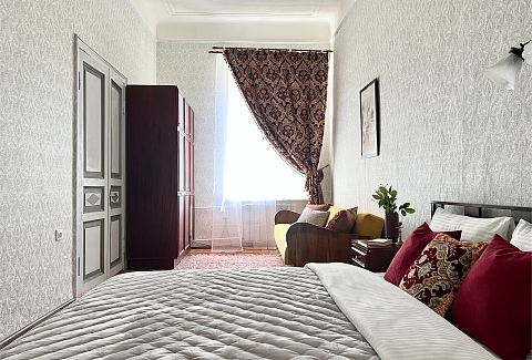 Просторная квартира с неповторимой атмосферой в cамом центре Петербурга! Красивая парадная выходит прямо на Невский проспект. Винтажная мебель и ретро-интерьер в сочетании с современными удобствами подарят вам возможность погрузиться в обстановку ушедшей эпохи, и при этом провести время с комфортом.