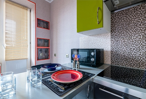 Поездом до ж/д вокзала Московский (г. Санкт-Петербург), далее пройти 580 м до станции метро «Маяковская», далее на метро до станции «Озерки», далее 1 км до апартаментов.