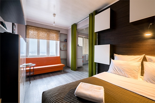 Самолетом до аэропорта Пулково (г. Санкт-Петербург), далее на автобусе №39 до остановки «ст. метро Московская», далее на метро до станции «Озерки», далее 1 км до апартаментов.
