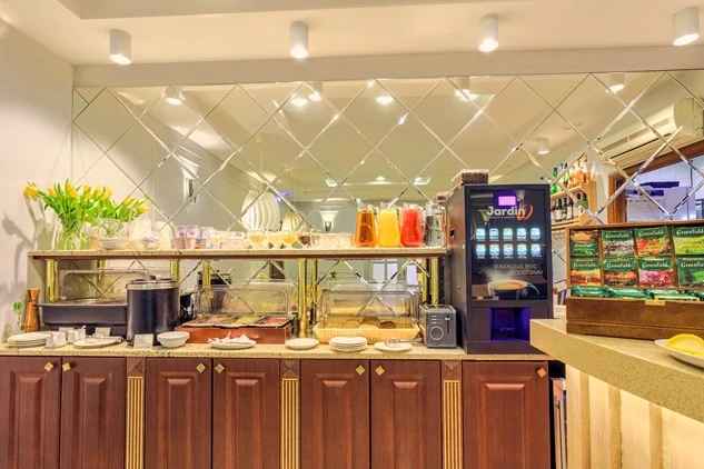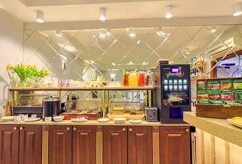 В шаговой доступности работают кафе, рестораны и многое другое. Расстояние до аэропорта составляет 34 километра. Отель расположился в 2-этажном здании. Номерной фонд представлен разным уровнем комфорта и вместимости. Комнаты оснащены всем необходимым для проживания гостей. Во всех номерах есть ванные комнаты с купальными халатами, туалетными принадлежностями и полотенцами. Номера полностью мебелированы, в них есть телевизоры, сейфы, электрические чайники. В баре гостиницы подаются вкусные завтраки, также здесь можно попробовать разнообразные напитки. Если гости приехали на автомобиле, то его можно оставить на парковке недалеко от отеля. На территории есть библиотека, где можно провести время. Также для удобства отдыхающих организуется трансфер. Кроме того, доступны другие услуги, такие как прачечная, индивидуальный заезд и отъезд, а также гладильные услуги. Прекрасным местом для проведения мероприятий и деловых встреч является конференц-зал.