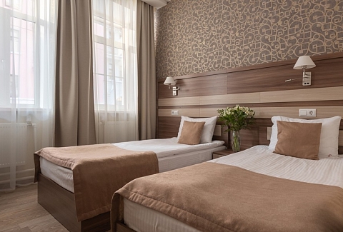 Поездом до ж/д вокзала Московский (г. Санкт-Петербург), далее на метро до станции «Гостиный двор», далее на метро до станции «Петроградская», далее пройти пешком 760 м до отеля.