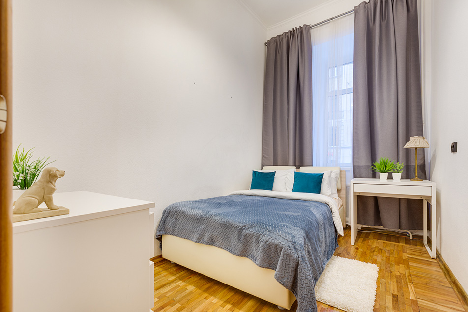 Самолетом до аэропорта Пулково (г. Санкт-Петербург), далее на автобусе №39Э до остановки «ст. м. Московская», далее на метро до станции «Площадь Восстания», далее пройти 1,4 км до апартаментов.