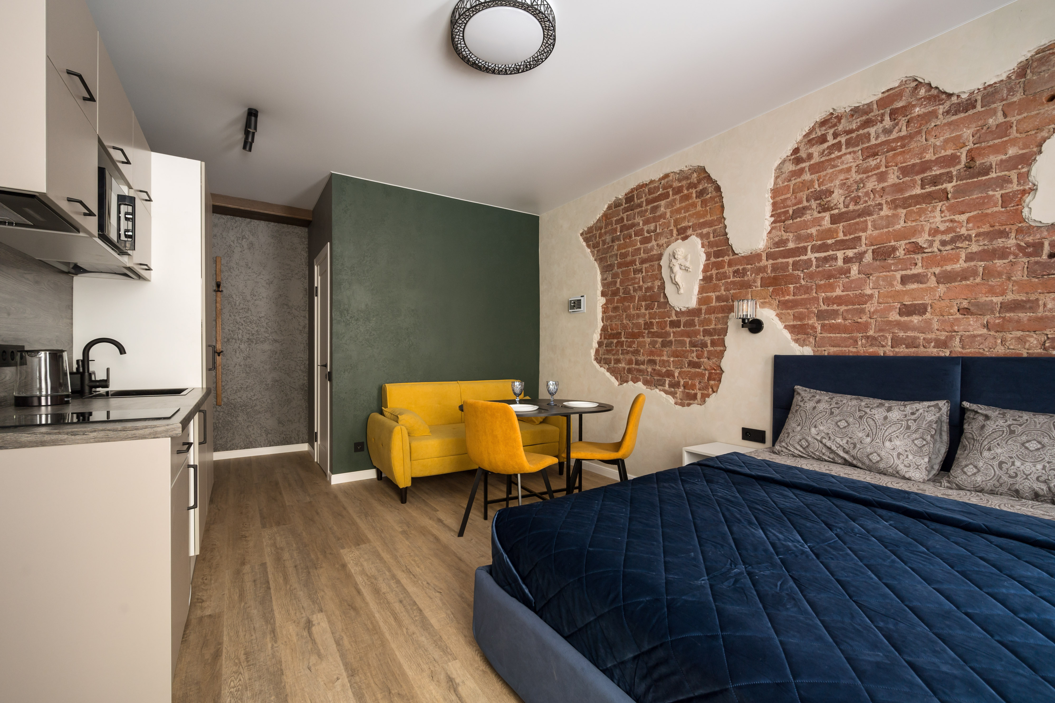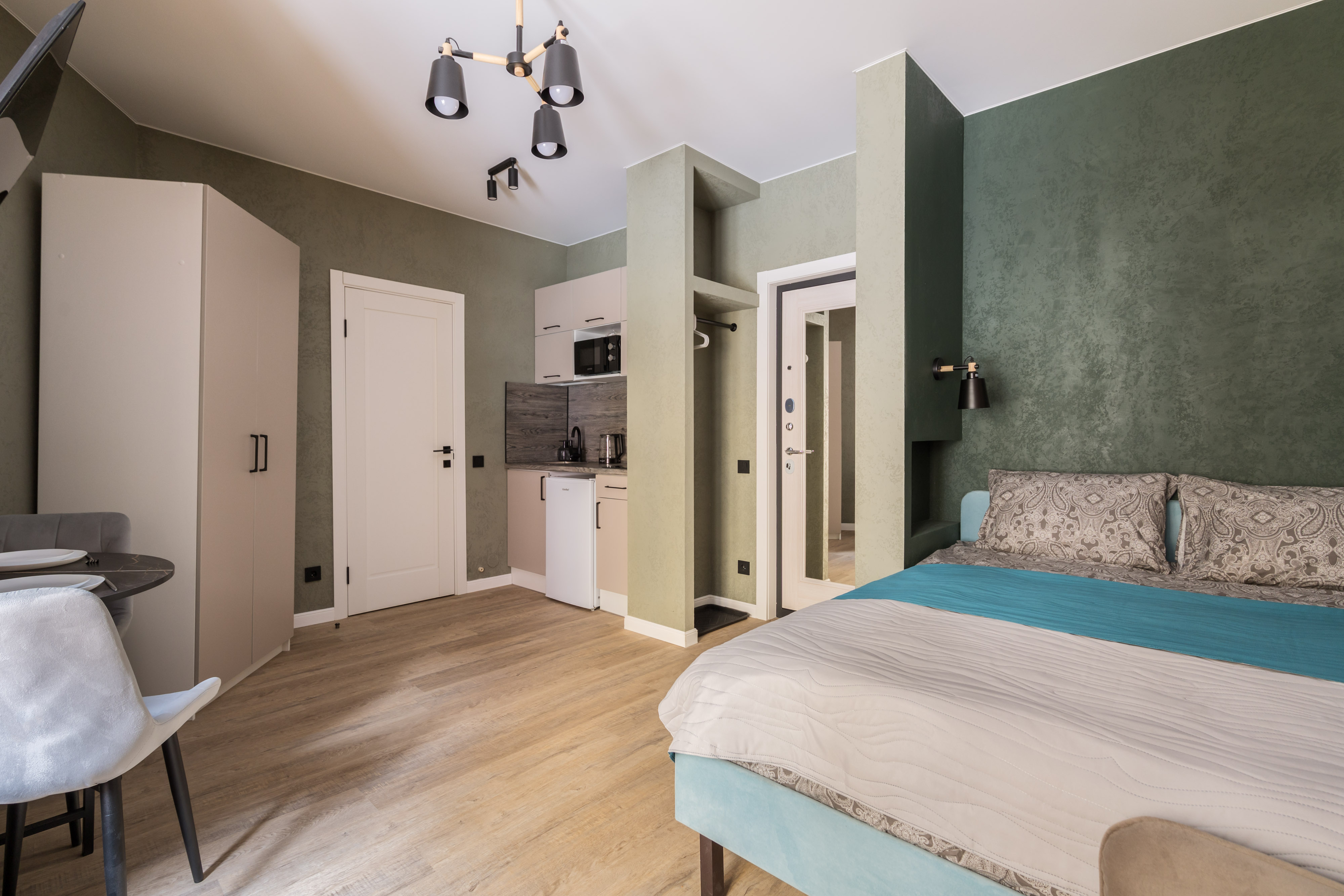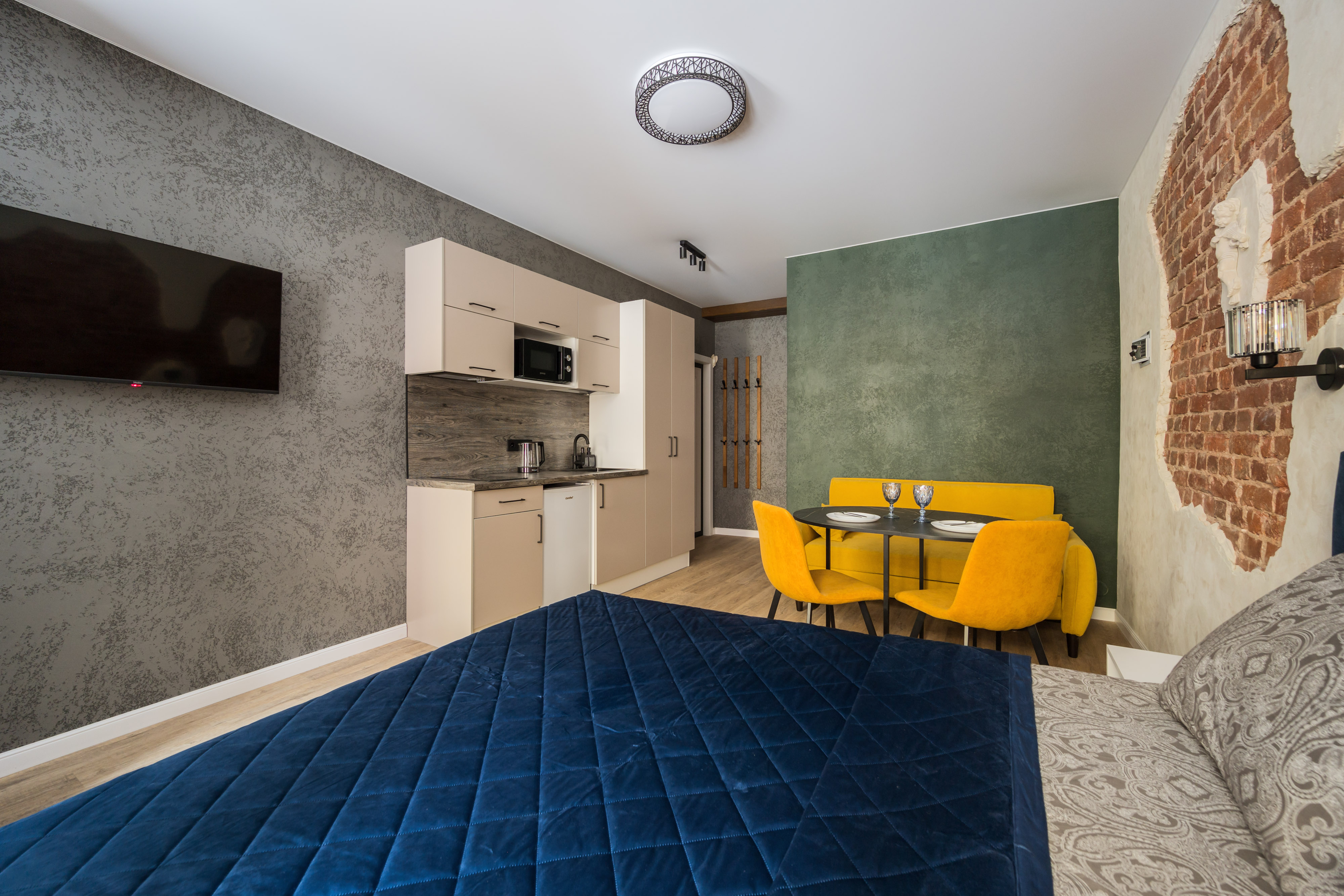 Для гостей на автомобиле в районе есть городские парковки.Просторная студия с современным ремонтом рассчитана на комфортное размещение до четырёх человек. К приезду гостей подготовлено свежее постельное бельё и полотенца. В собственном санузле с душем есть фен и базовый набор гигиенических принадлежностей. Стиральная машина находится в общем коридоре на три студии. Стабильный Wi-Fi позволяет оставаться на связи. Кухонный гарнитур полностью оборудован: электрический чайник, необходимая посуда, обеденный стол со стульями — всё готово для轻松 приготовления и приёма пищи.Эти апартаменты созданы для тех, кто ценит независимость, простор и хочет жить в ритме центра города, но при этом иметь возможность спокойно отдохнуть. Атмосфера здесь лёгкая, домашняя и очень гостеприимная.